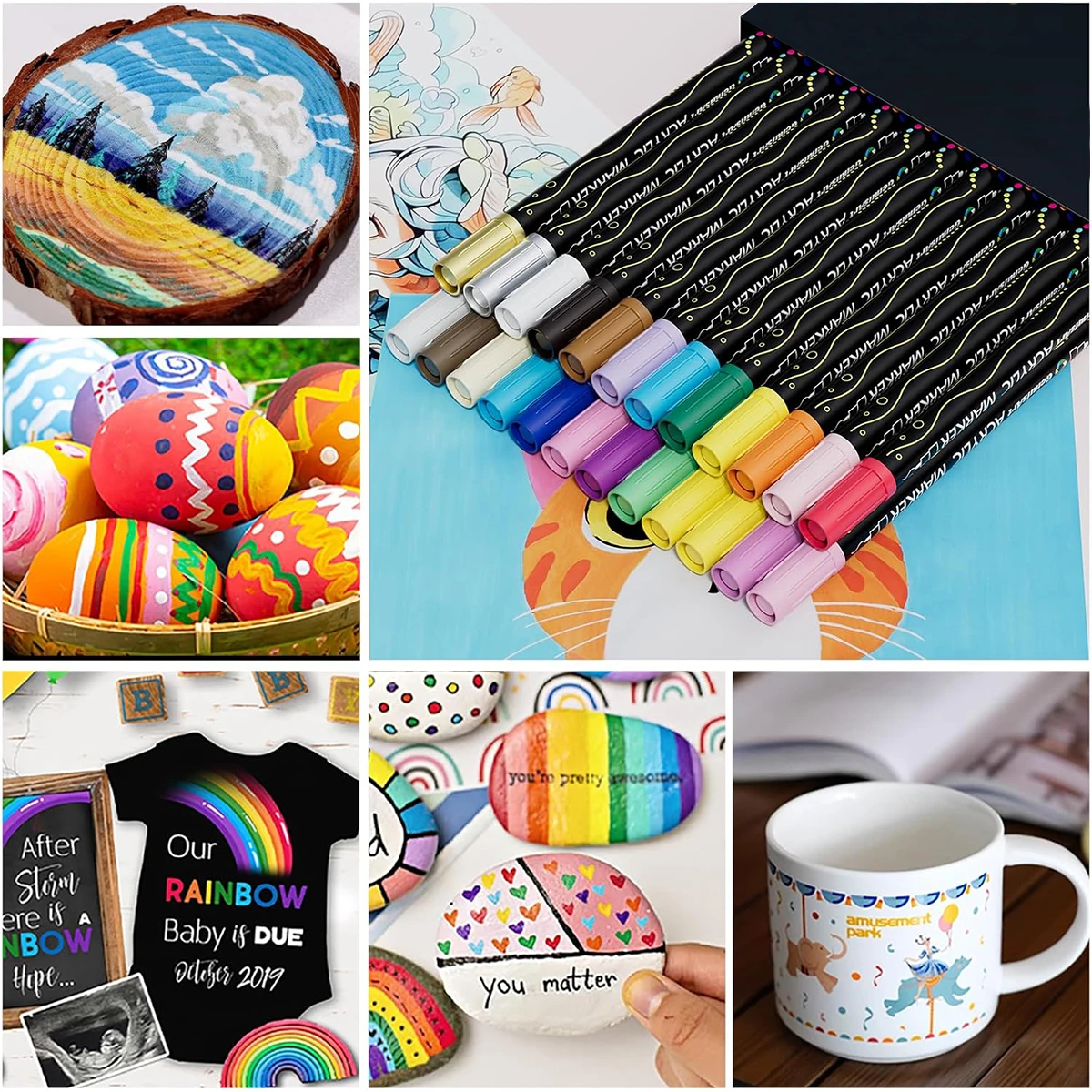 12/24/36/48/60 Colors Dual Tip Acrylic Paint Pens Markers for Wood Canvas Stone Rock Painting Glass Ceramic Surfaces DIY Crafts
