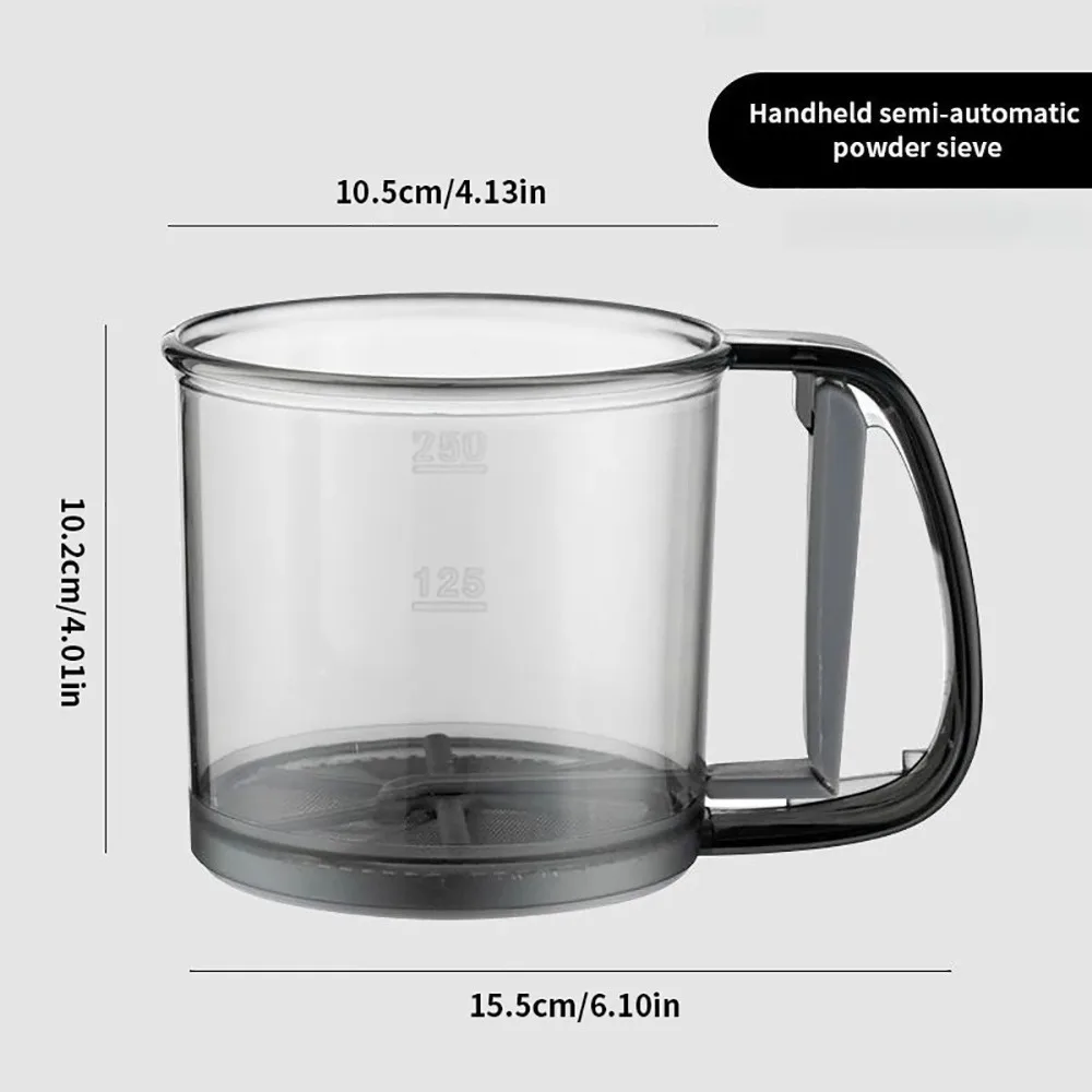 1Pcs Fine Mesh Flour Sifter with Tray Powdered Sugar Plastic Sifter One Hand Press Design Kitchen Cake Filter Baking Tool