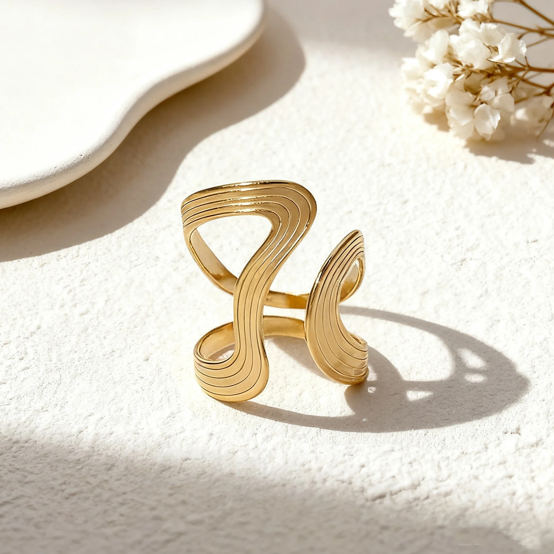 aliexpress , ali , shop , ali shop , online , store , online shop , online store , buy , sell , Stainless Steel Open Rings For Women Irregular Wave Hollow Design Finger Ring Stylish Creative Waterproof Jewelry Party Gifts