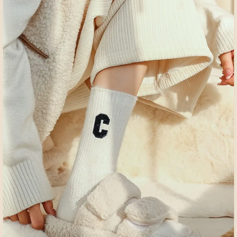 aliexpress , ali , shop , ali shop , online , store , online shop , online store , buy , sell , Women's Autumn Winter Socks Mid Tube Socks Cashmere Sock Embroidered Letter Pile Sock Thickened Warm Wool Sock Solid Color Socks