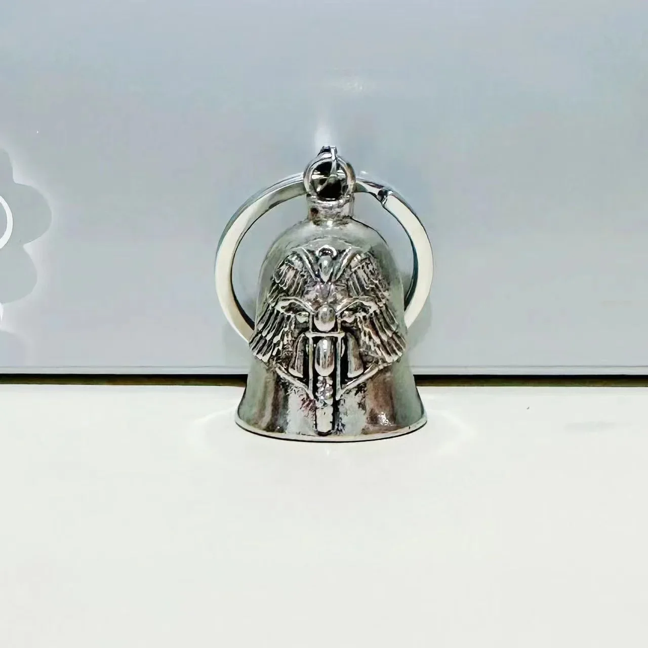 Angel Wings Motorcycle Bell Keychain Punk Rock Stainless Steel Pendant Men's Riding Exorcism Amulet Trendy Biker Party Jewelry