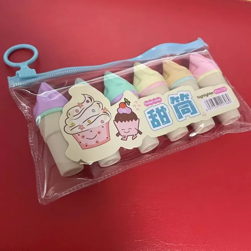6Pcs Cute Ice Cream Highlighters Set Mini Marker Pens Kids Stationery Students Drawing Painting Tool Student School Supplies New