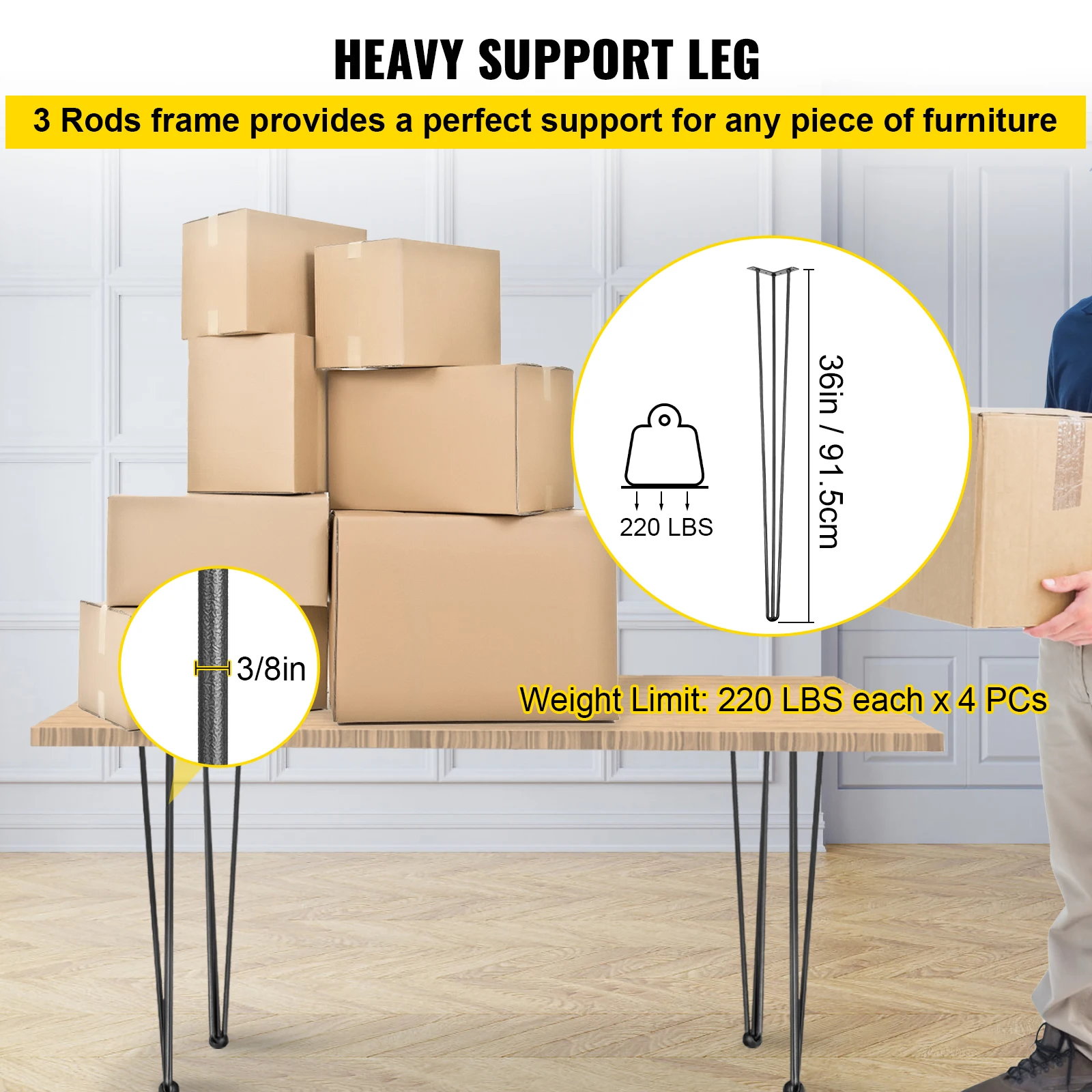SucceBuy Hairpin Table Legs Black Set of 4 Desk Legs 3 Rods for Bench Desk Dining Chairs Carbon Steel DIY Heavy Duty Furniture