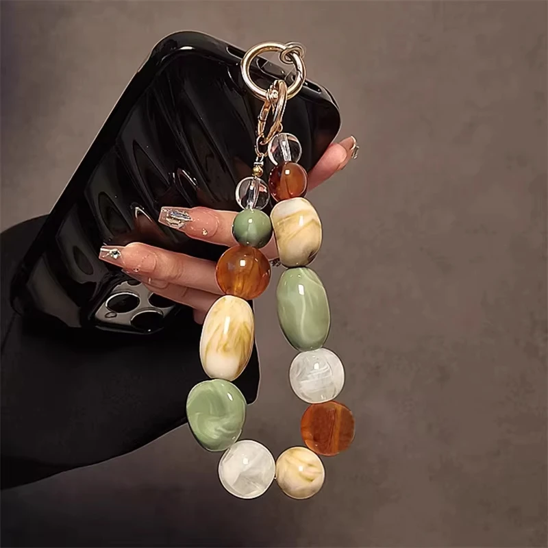 Korean Retro Bead Bracelet For iPhone Phone Strap Charm Chain Knot Cellphone Lanyard Keychain Bag Earphones Pendant Accessories