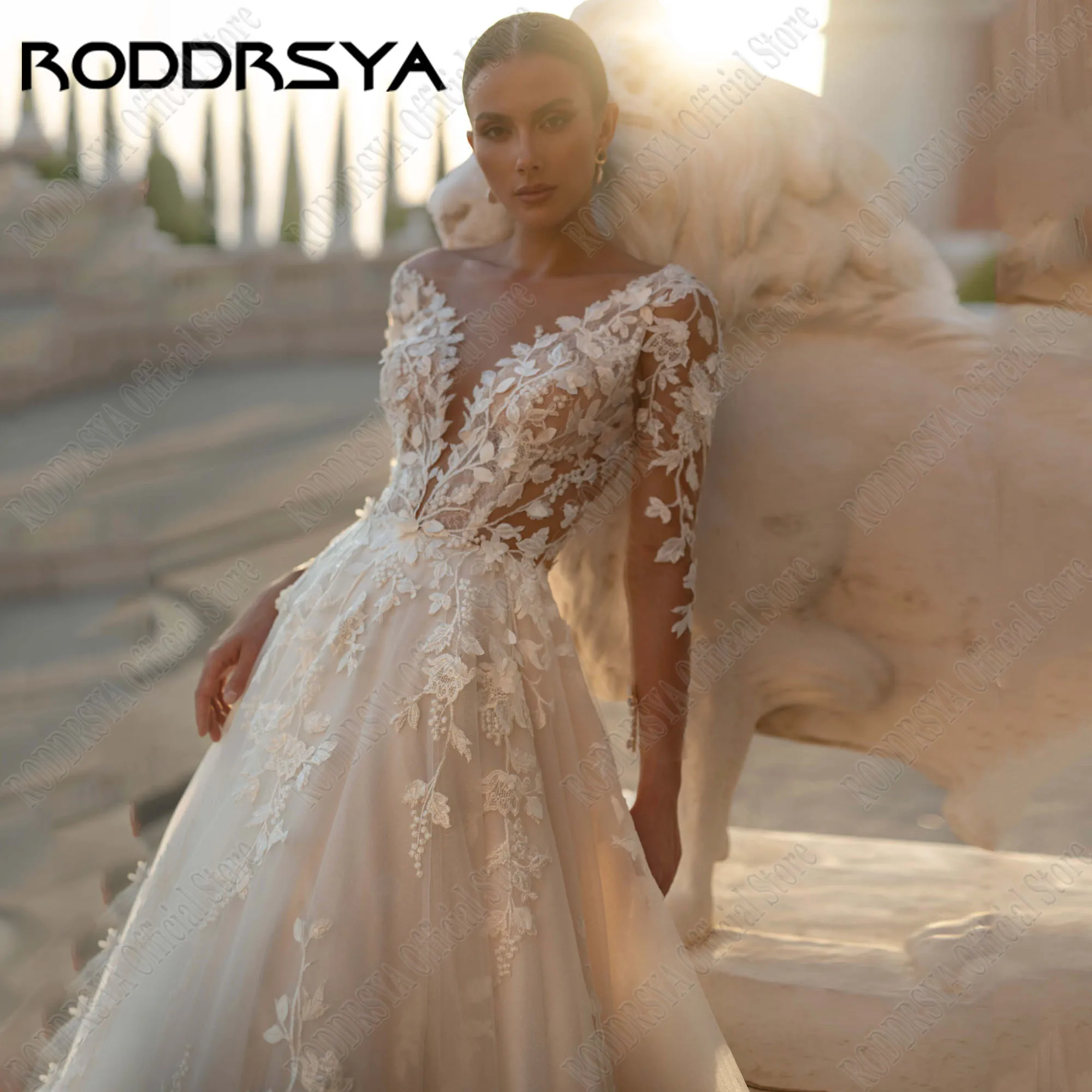 aliexpress , ali , shop , ali shop , online , store , online shop , online store , buy , sell , RODDRSYA Customized Luxury Long Sleeves Wedding Dress A Line Applique Lace Scoop Neck Soft Tulle Boho Bridal Gown Sweep Train