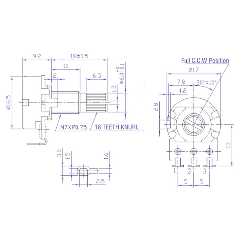 A500K B500K A250K B250K A50K B25K Potentiometer Splined Small Pot Electric Guitar Bass Effect Amp Tone Volume18mm Shaft Parts