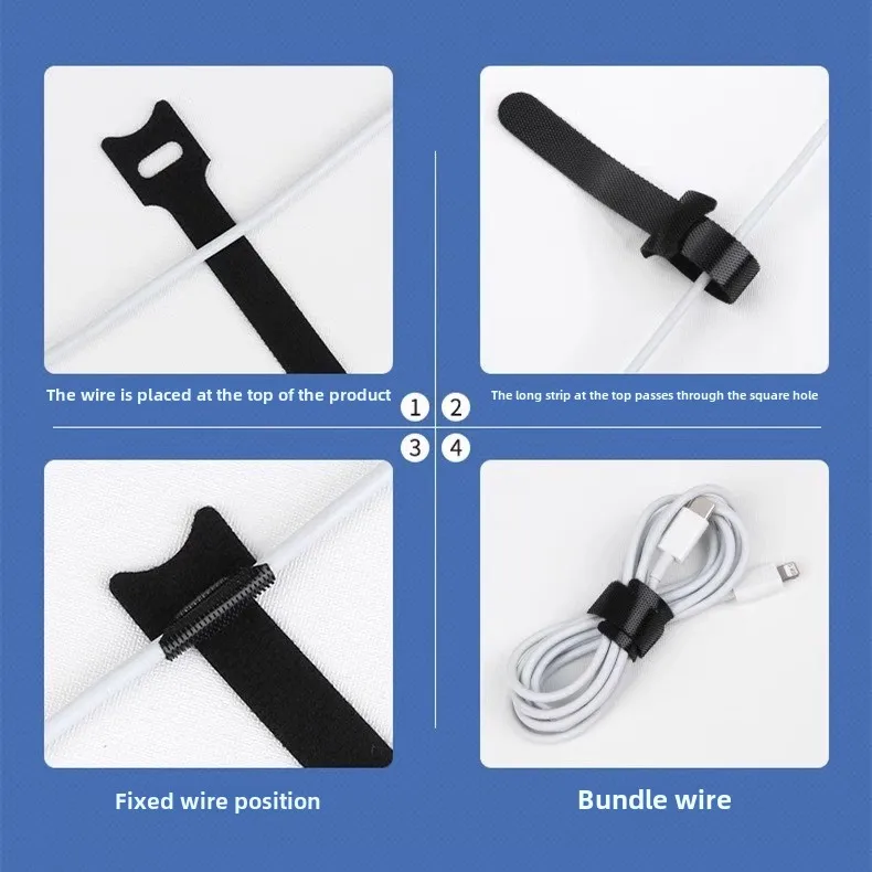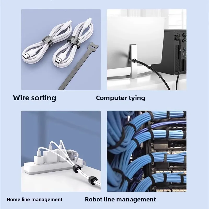 Self Adhesive Velcro Fastener Nylon Fastening Wire Buckle Diy Cable Management Straps Adjustable Cord Buckle Reusable Cable Ties