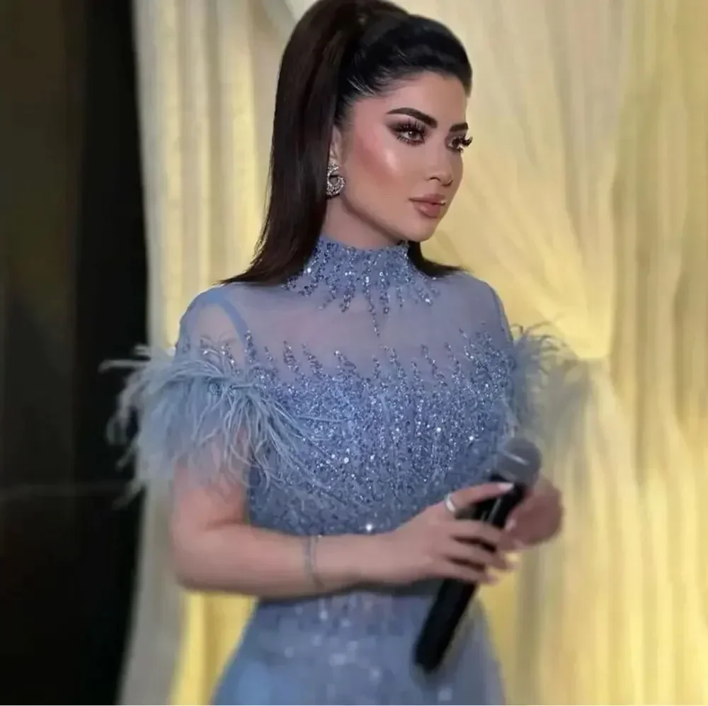 Customized Prom Dresses Exquisite Classic Organza Feather Beading Draped A-line Long Dress High Quality Evening Party for Women