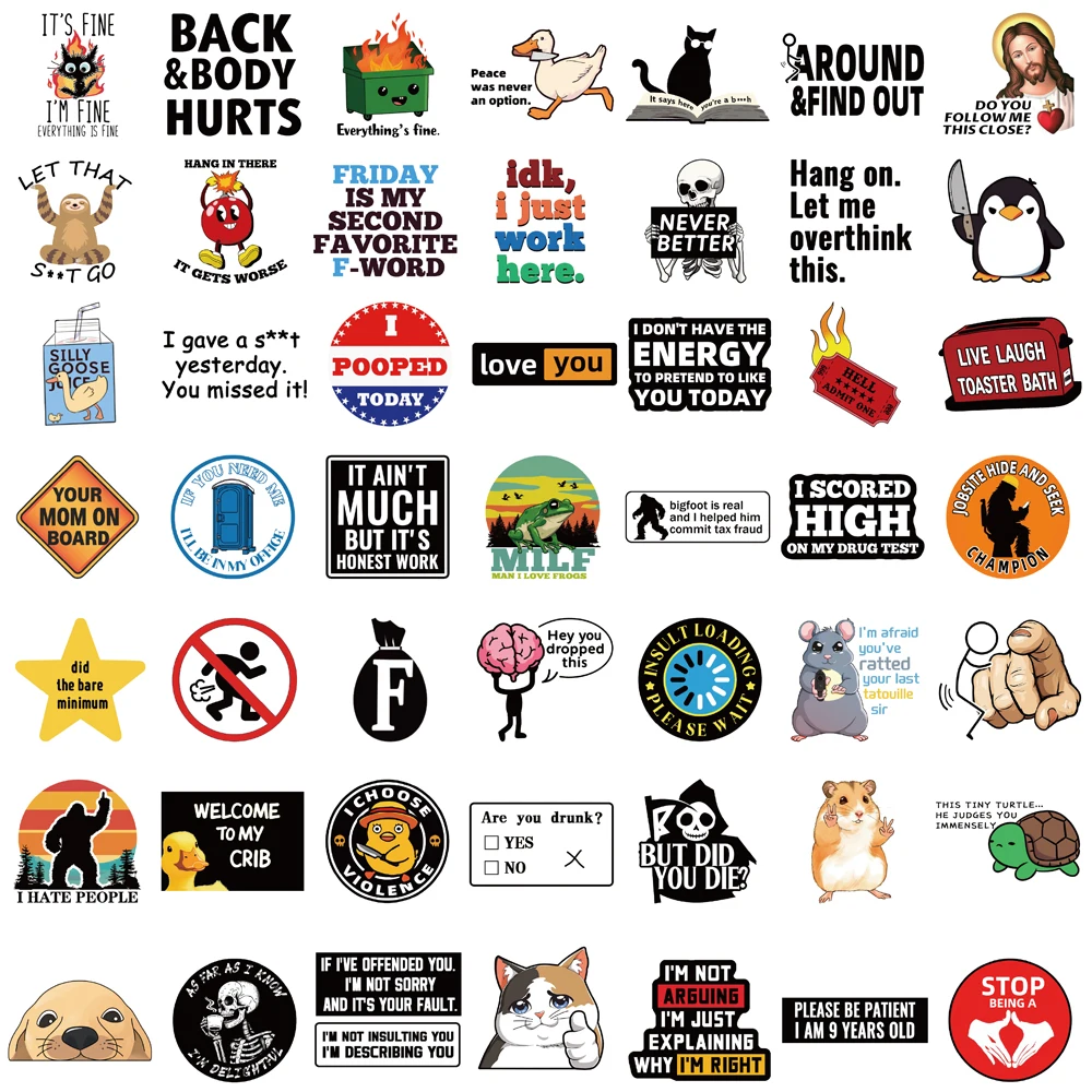 50PCS Prank Meme Stickers Harajuku Decals DIY Fashion Graffiti Decals Luggage Notebook Bike Gift Phone Suitcase Sticker