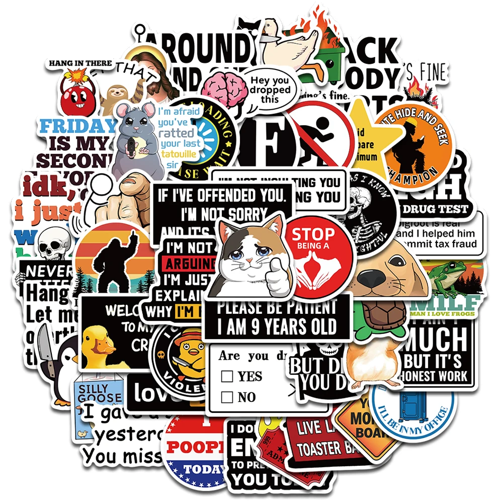 aliexpress , ali , shop , ali shop , online , store , online shop , online store , buy , sell , 50PCS Prank Meme Stickers Harajuku Decals DIY Fashion Graffiti Decals Luggage Notebook Bike Gift Phone Suitcase Sticker