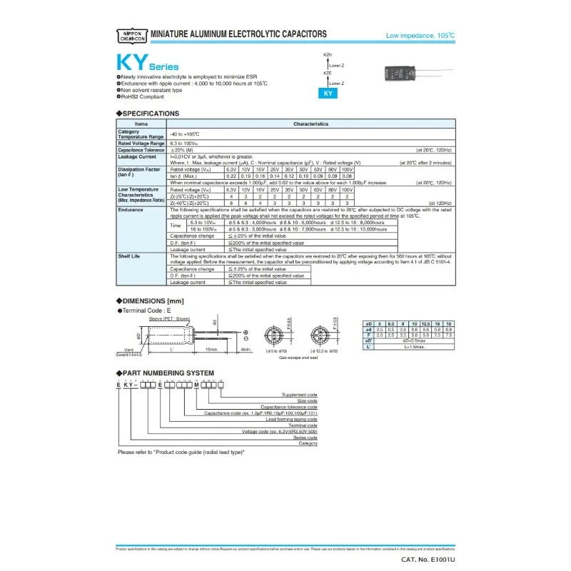 ALI shop - search results ... ... NIPPON NCC KY Series Low impedance ESR Long Life 6.3V/10V/16V/25V/35V/50V 1uF~1000uF Aluminum Electrolytic Capacitor ::: 2021 ::: :::