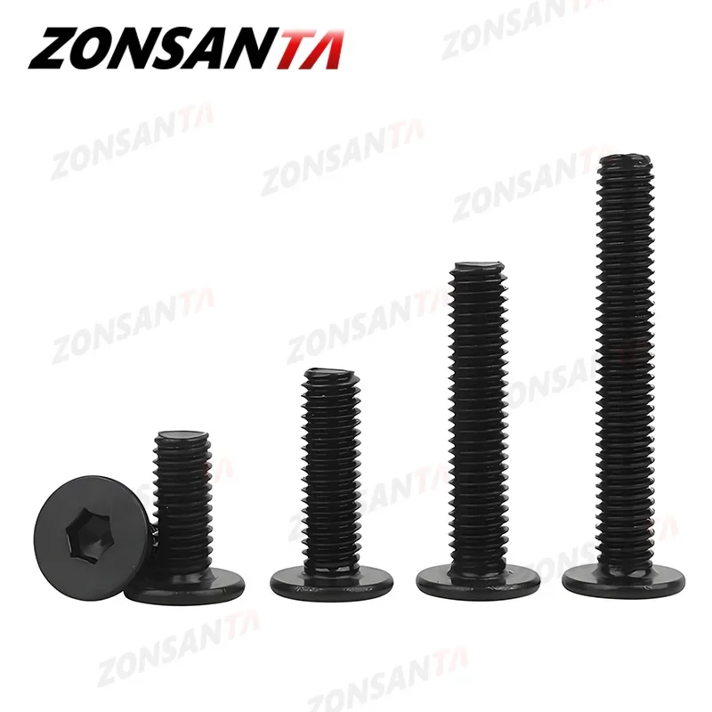 Black 304 Stainless Steel Allen Hexagon Ultrathin Head Bolt Hex Socket Ultra Thin Flat Wafer Head Screw M2 M2.5 M3 M4 M5 M6 M8