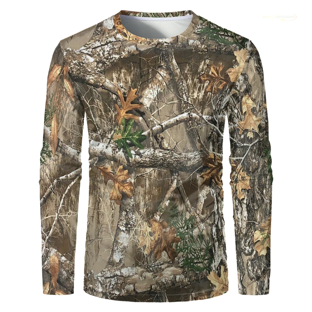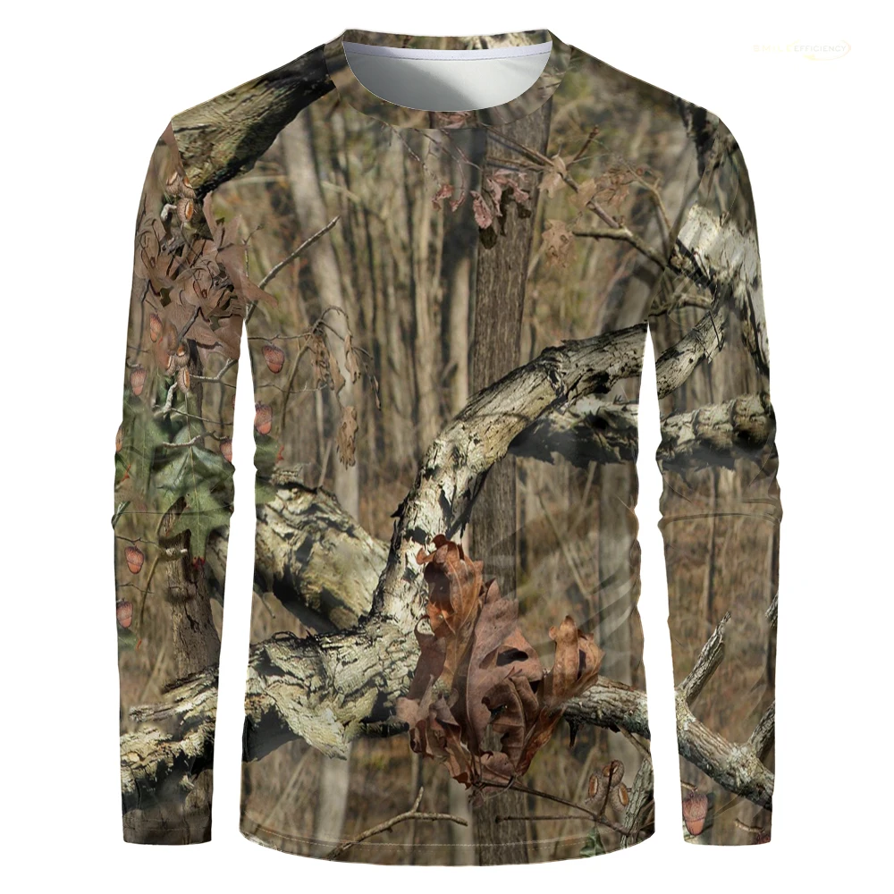 Camouflage Hunting T-Shirt Forest Print Men T Shirt Outdoor Sports Long Sleeve Trip Tactical Training Oversize Top Mens Clothing