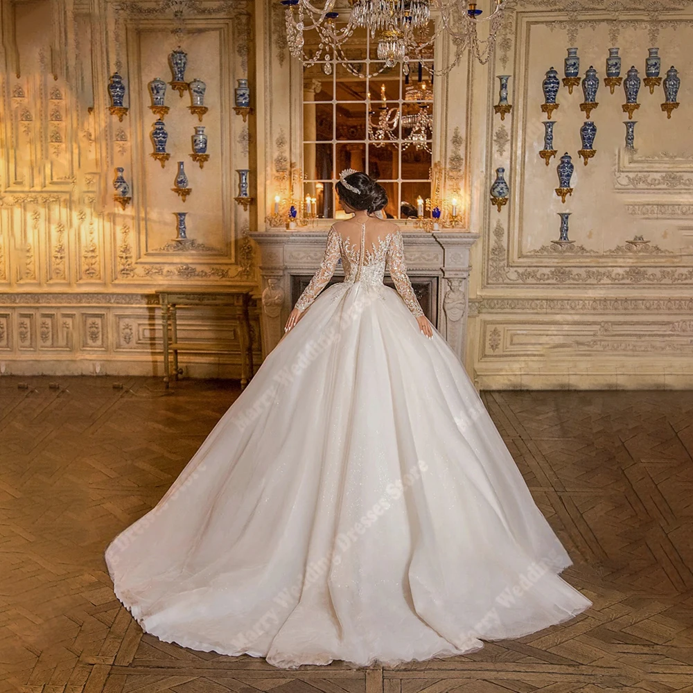 Elegant A-Line Women Wedding Dresses Bright Lace Appliques Bridal Gowns Long Sleeves Princess Vestidos De Novias Boda Customized
