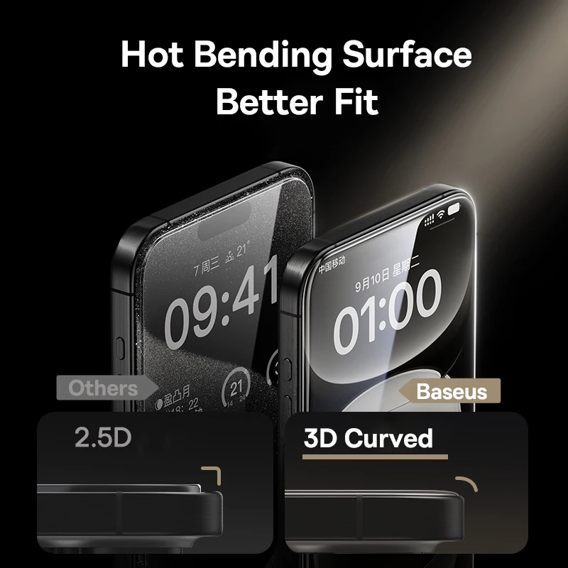 Baseus 3D Curved Tempered Glass for iPhone 16 15 Pro Max Hot Bending Full Coverage Shatterproof Clear Corning Screen Protector