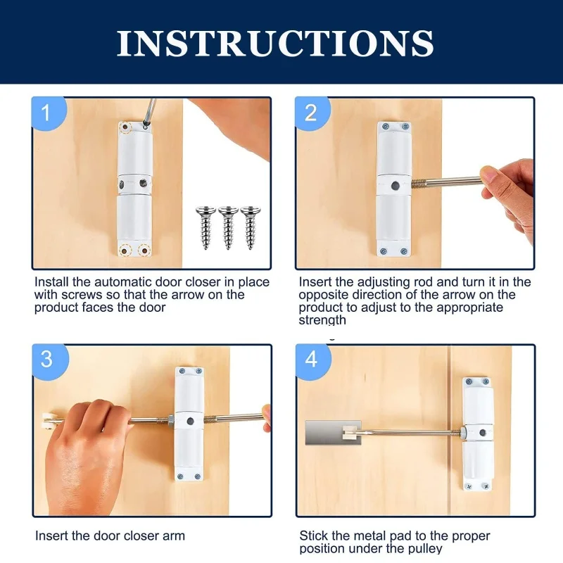 180 Degree Automatic Door Closer Metal Adjustable Heavy Duty Safety Spring Silence Durable Convert Hinged Door Interior Exterior
