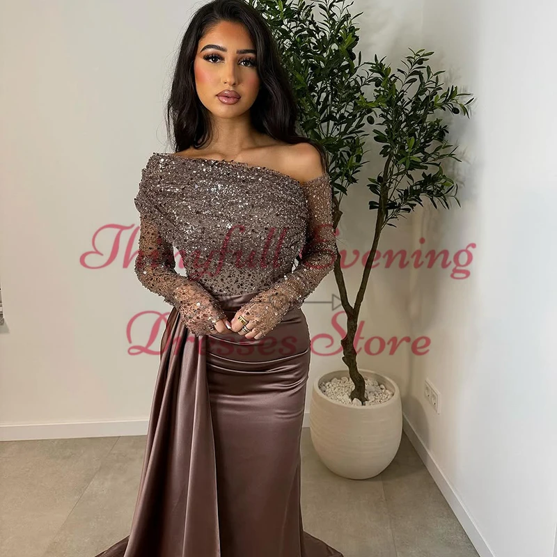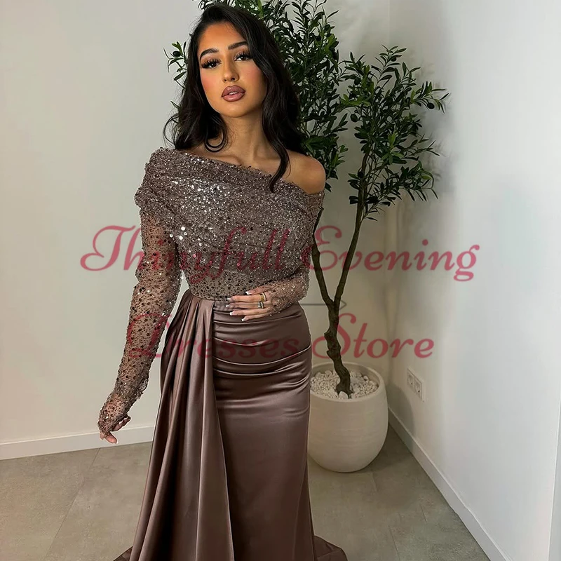 Thinyfull Mermaid Prom Evening Dresses Saudi Arabia Sequines Long Sleeves Night Party Dress Cocktail Prom Gowns Customized