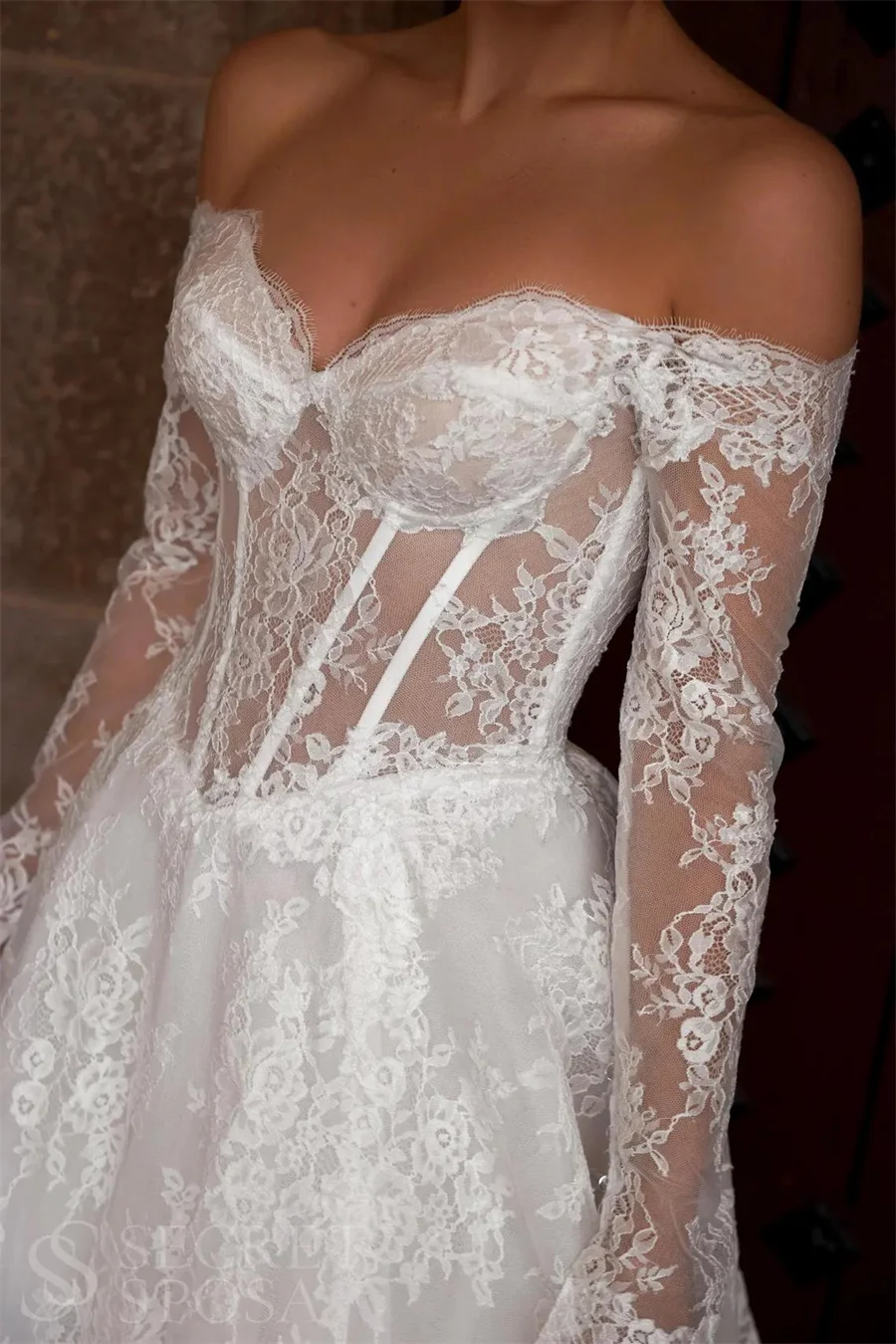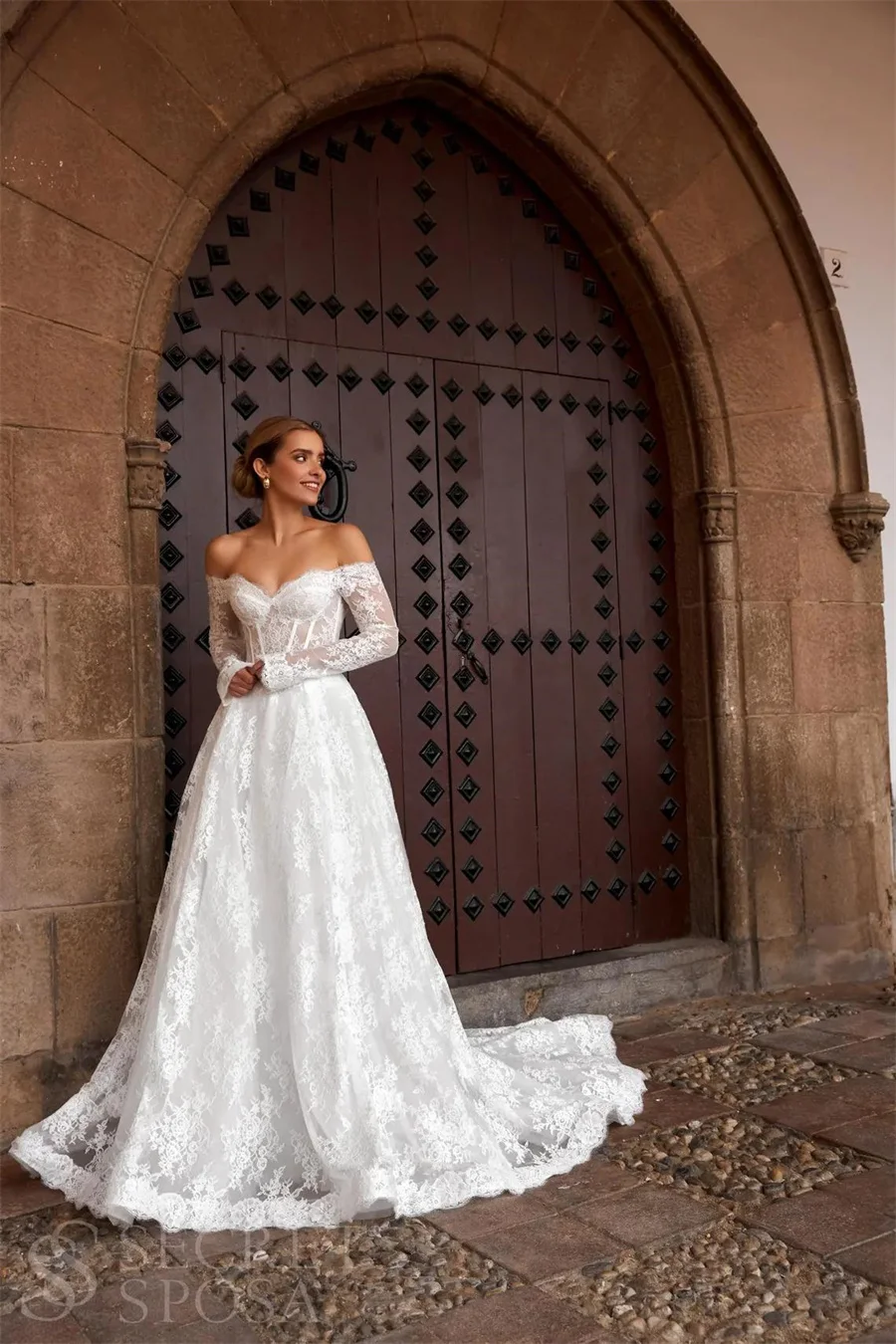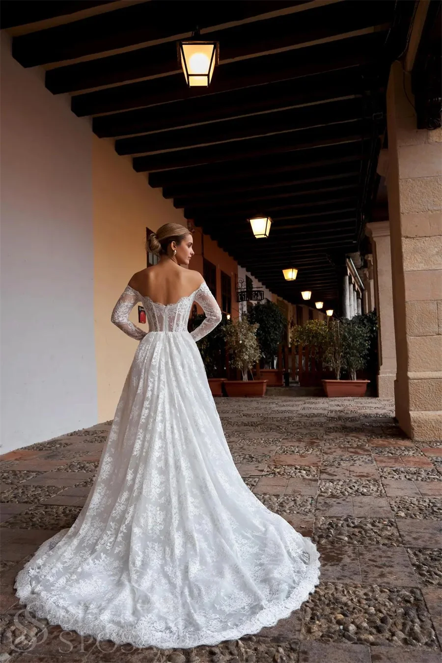 Customized Sweetheart Wedding Dress 3/4 Sleeve A-line Backless Lace Bridal Dresses For Wedding vestidos de novia robe de mariée