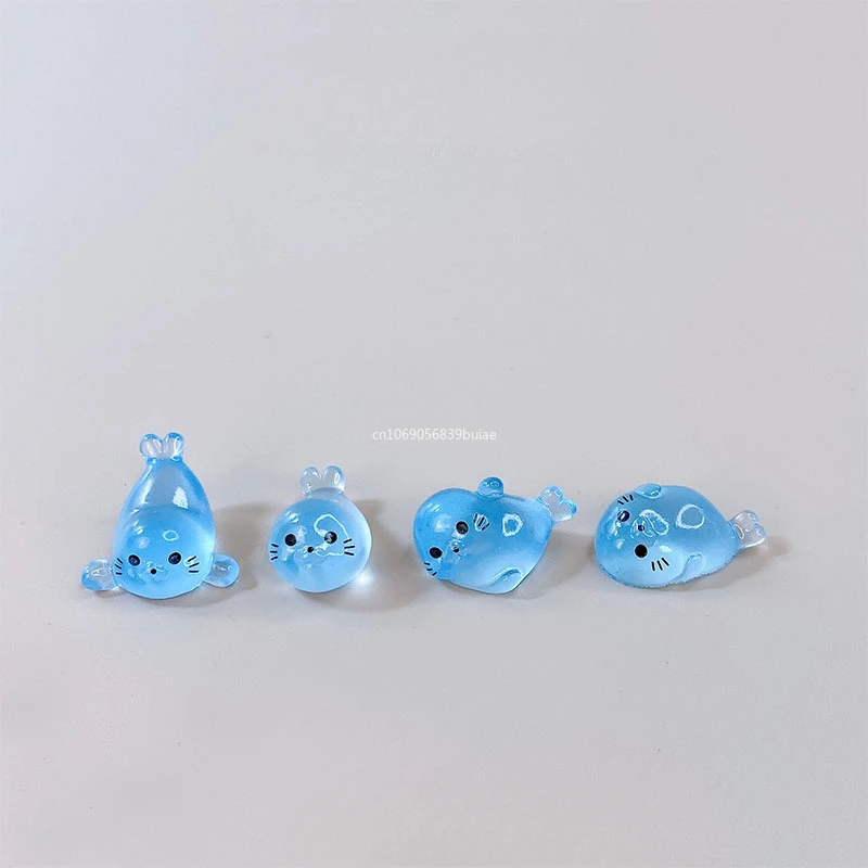 4/1PCS Marine Animal Glowing Seal Miniature Statue DIY Decoration Colorful Luminous Mini Seal Micro Landscape Figure Ornaments