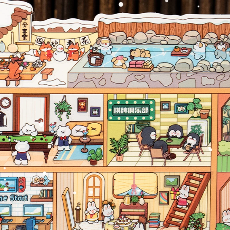 6Style 3Sheets/bag Fun World Stereoscopic Miniature PET Large Scenography Stickers DIY Handbook Scrapbook Photo Frame Notebook