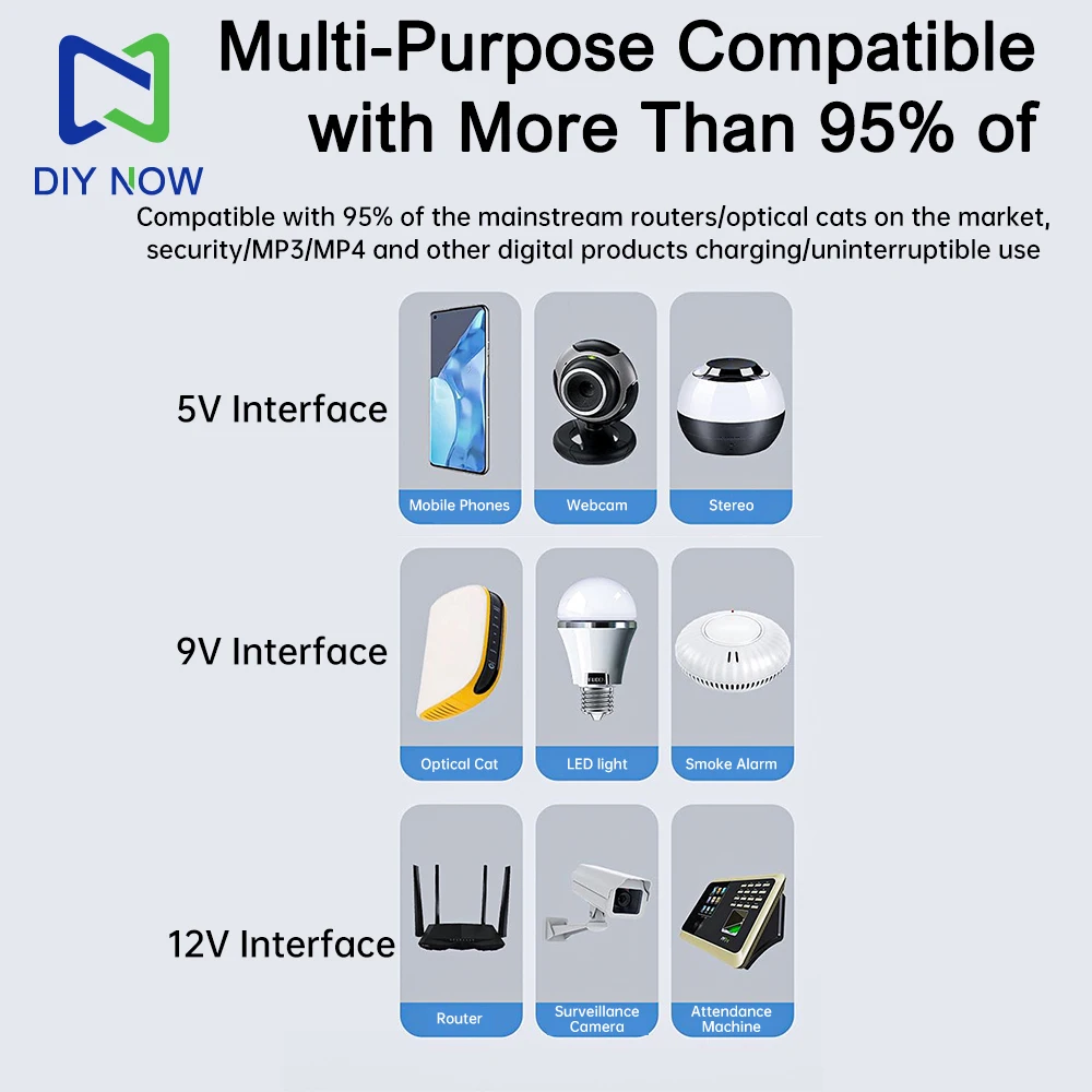 AC85-265V DC1018L Router 5V9V12V Fiber Optic Modem Monitoring Backup Ups Uninterruptible Power Supply For 18650 Lithium Battery