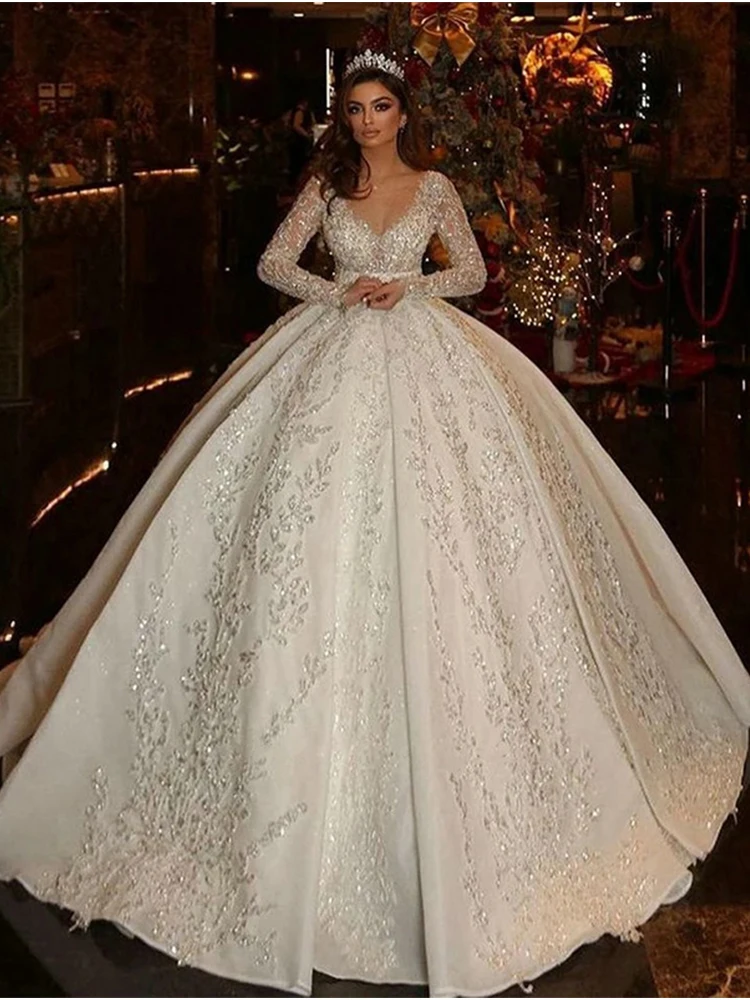 aliexpress , ali , shop , ali shop , online , store , online shop , online store , buy , sell , Shiny Chic Wedding Dress Fully Beaded With Princess Ball Gown O-Neck Full Sleeve Bride Dress Customized Button Vestido De Novia