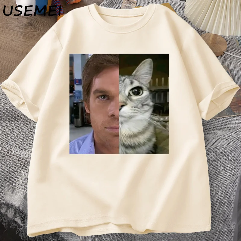 Dexter Morgan Cat T-shirts Funny Cotton Short Sleeve O Neck Tshirt Uni Streetwear Mens Clothes Harajuku Printed T-shirt Tops