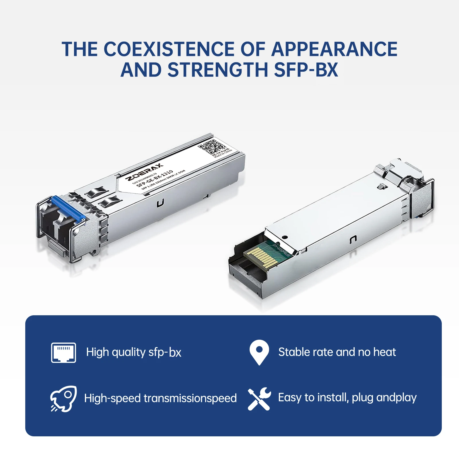 ZoeRax 1.25G LC SFP Single-mode Duplex Optic Module LC Gigabit SFP Fiber Transceiver Module 1000 Base BX 1310nm up to 20km DDM