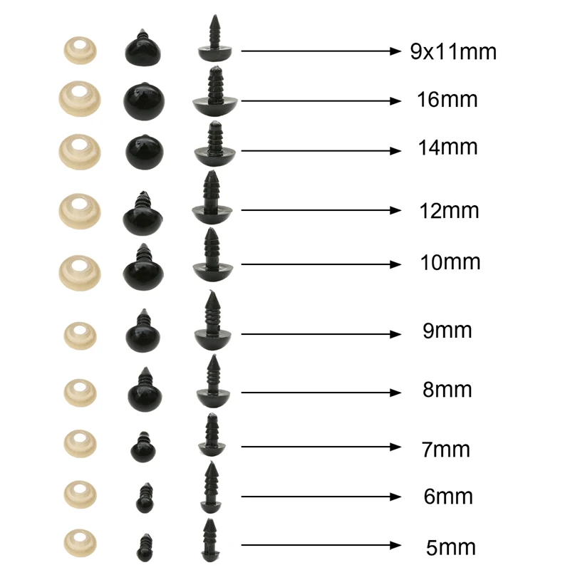 200/100PCS 5-16mm Black Plastic Safety Eyes For Toys Amigurumi Diy Kit Crafts TeddyBear Toy Eye For Doll Decoration Accessories