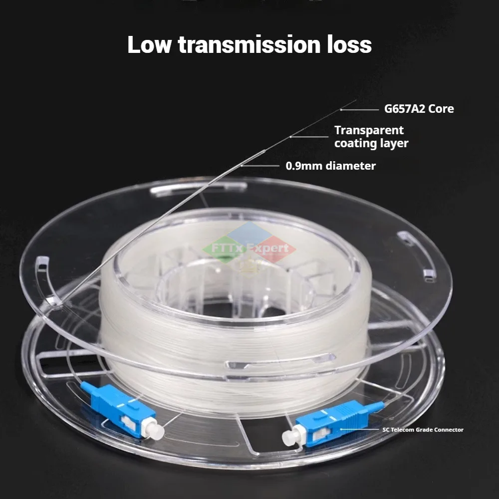 SC UPC Indoor transparent fiber optic cable 10-100M G657A2 Invisible 0.9mm Single-mode Single Core Jumper