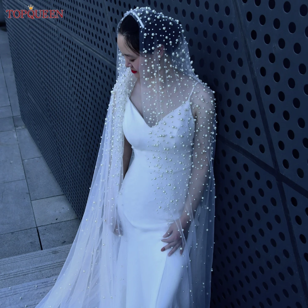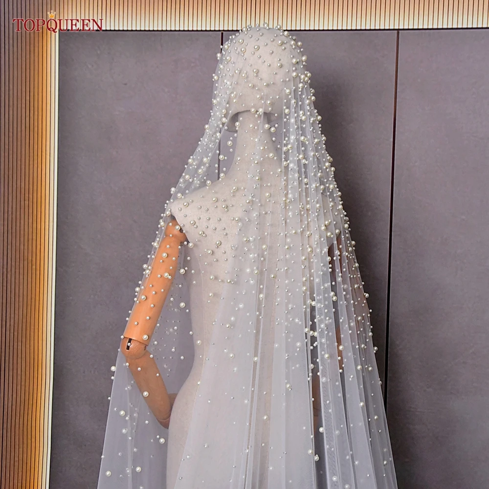 TOPQUEEN V139 Luxury Cathedral 3/5M Long Wedding Veil With Pearls Voile De MariéE Pearl Veil Bridal Hair Accessories