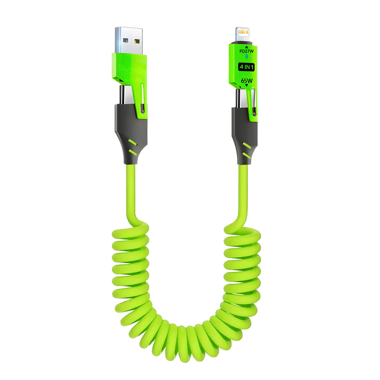 65W 4 in 1 Spring Short Data Cable 6A USB Type C Spring Telescopic Quick Charger Wire Spring USB Cable for iPhone iPad MacBook