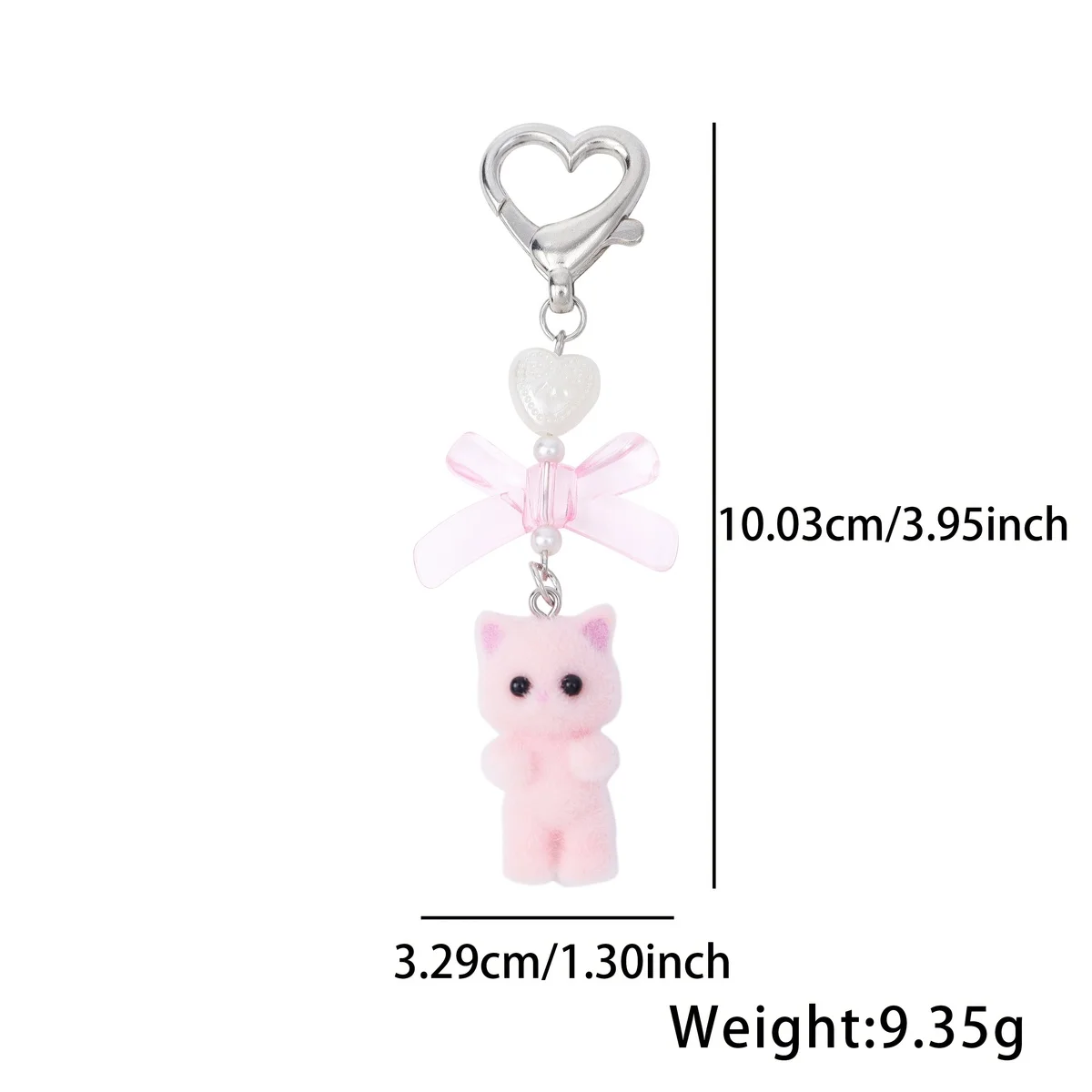 Cute Cartoon Flocking Cat Keychain Y2K Heart Bow Shaped Key Ring For Women Girls Handbag Backpack Pendant Decoration Gift