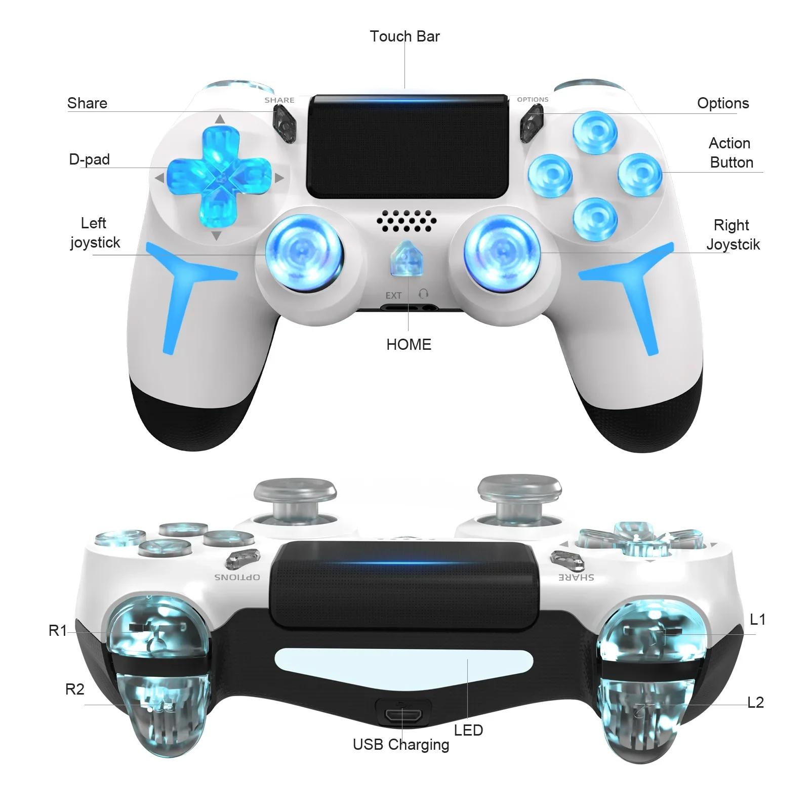 GAMINJA RGB Wireless Gamepads LED Light Bluetooth Game Controller For PS4 PS3 Console Computer PC 6axis Gyroscope Dual Vibration
