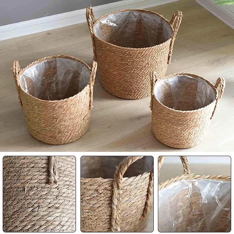 Nordic Extra Large Straw Flower Pot Seaweed Storage Basket Potted Green Plant Flower Basket Hand Woven Floor Indoor Flower Pot
