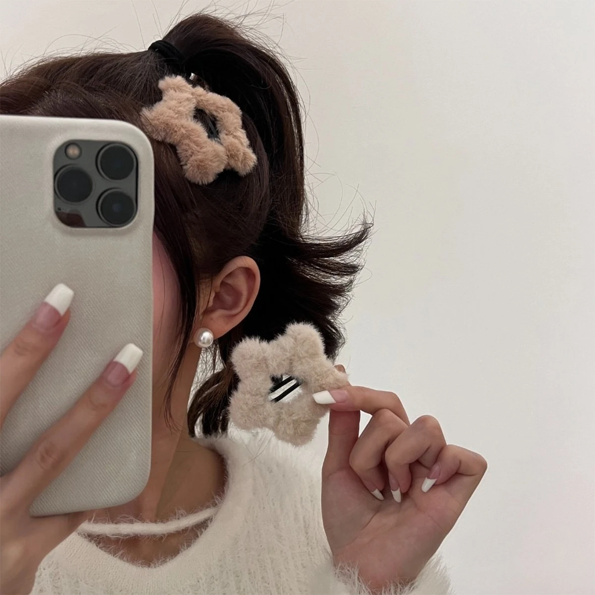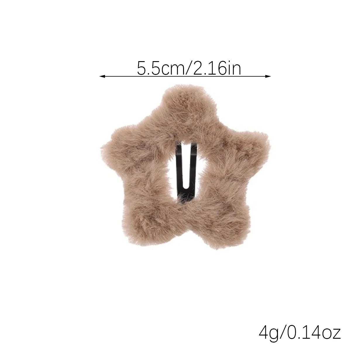 4pcs Plush Star Hairpins Autumn Winter Soft Cute BB Clips Side Bangs Sweet Girl Hollow Hairpin Trendy Accessory