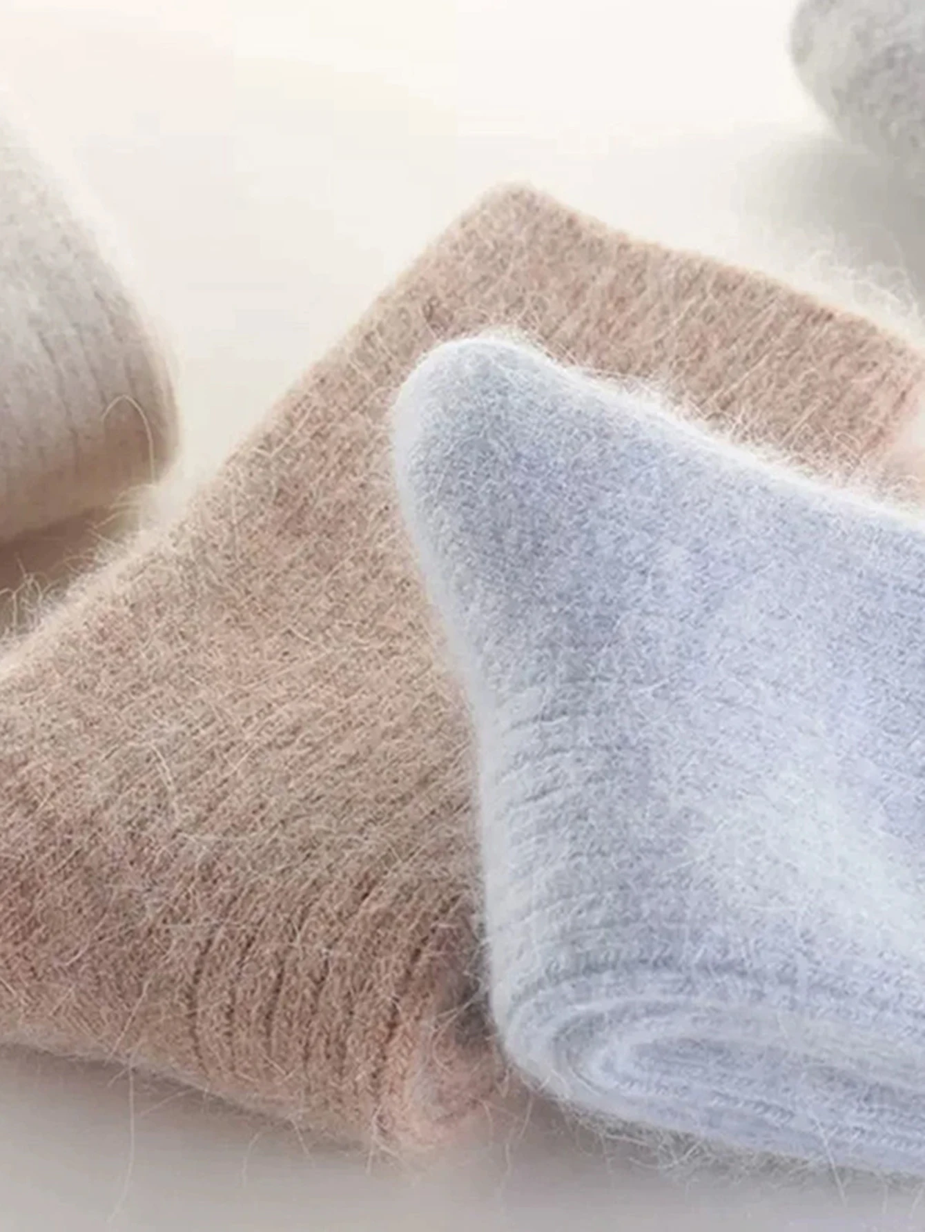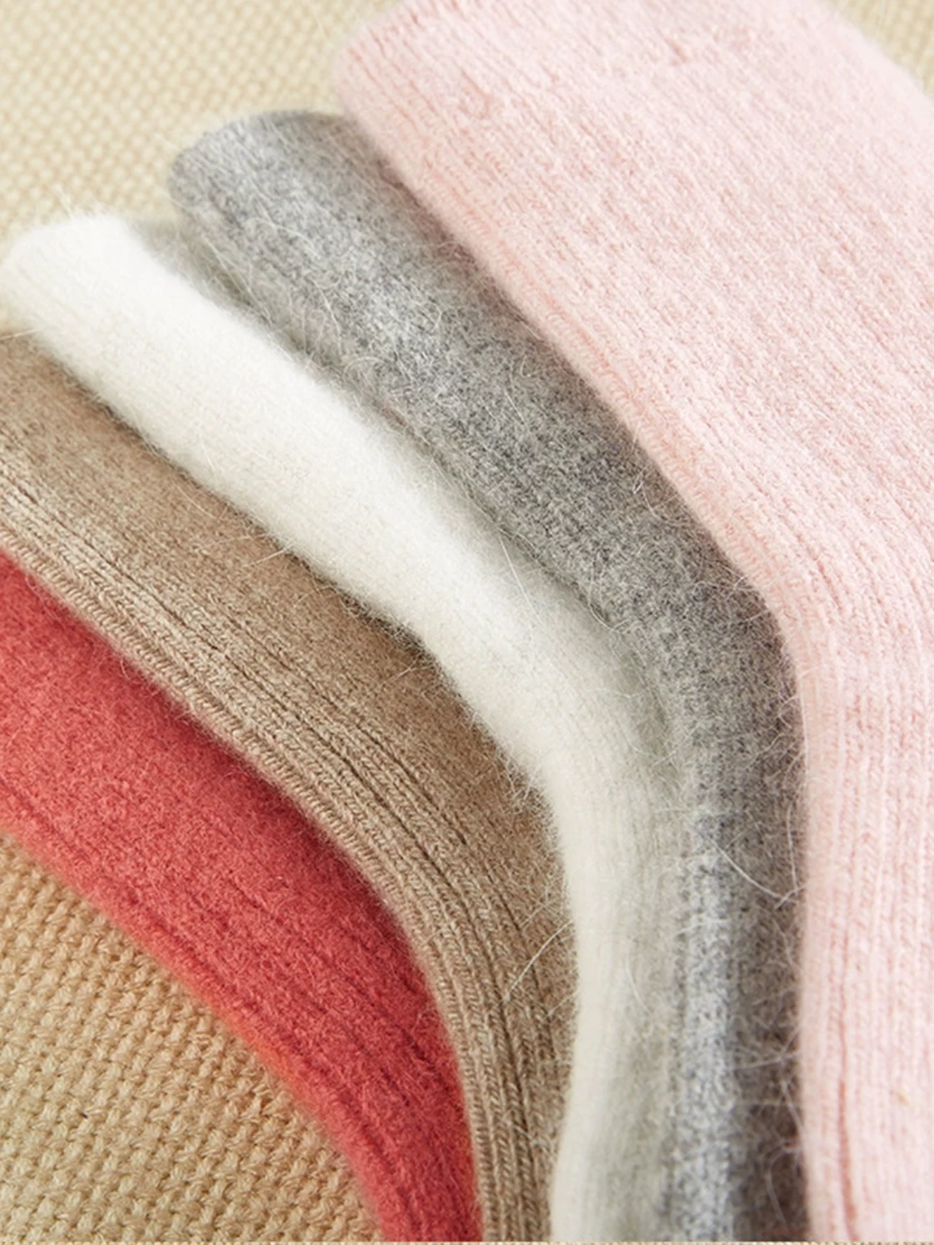 1pair Thick and Warm Cashmere Socks Pleated Vertical Strips Socks Autumn Solid Color Winter Warm Socks for Women