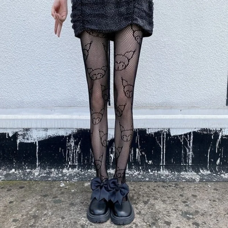 Sanrio Hello Kitty Fishing Net Socks Stockings Women's Cartoon Kuromi Thin Hollowed-out Fishnet Stockings Bottom Pantyhose
