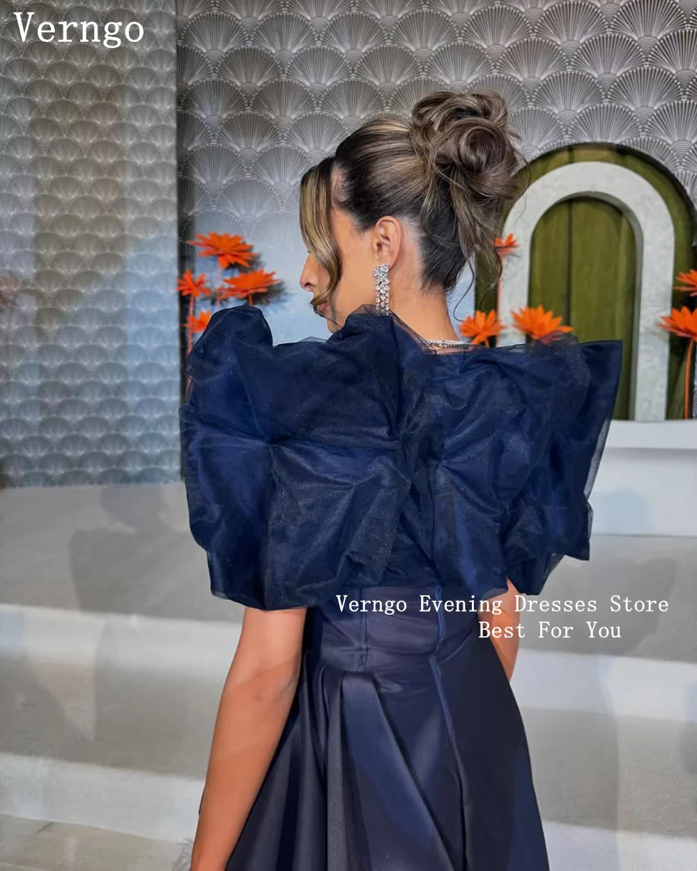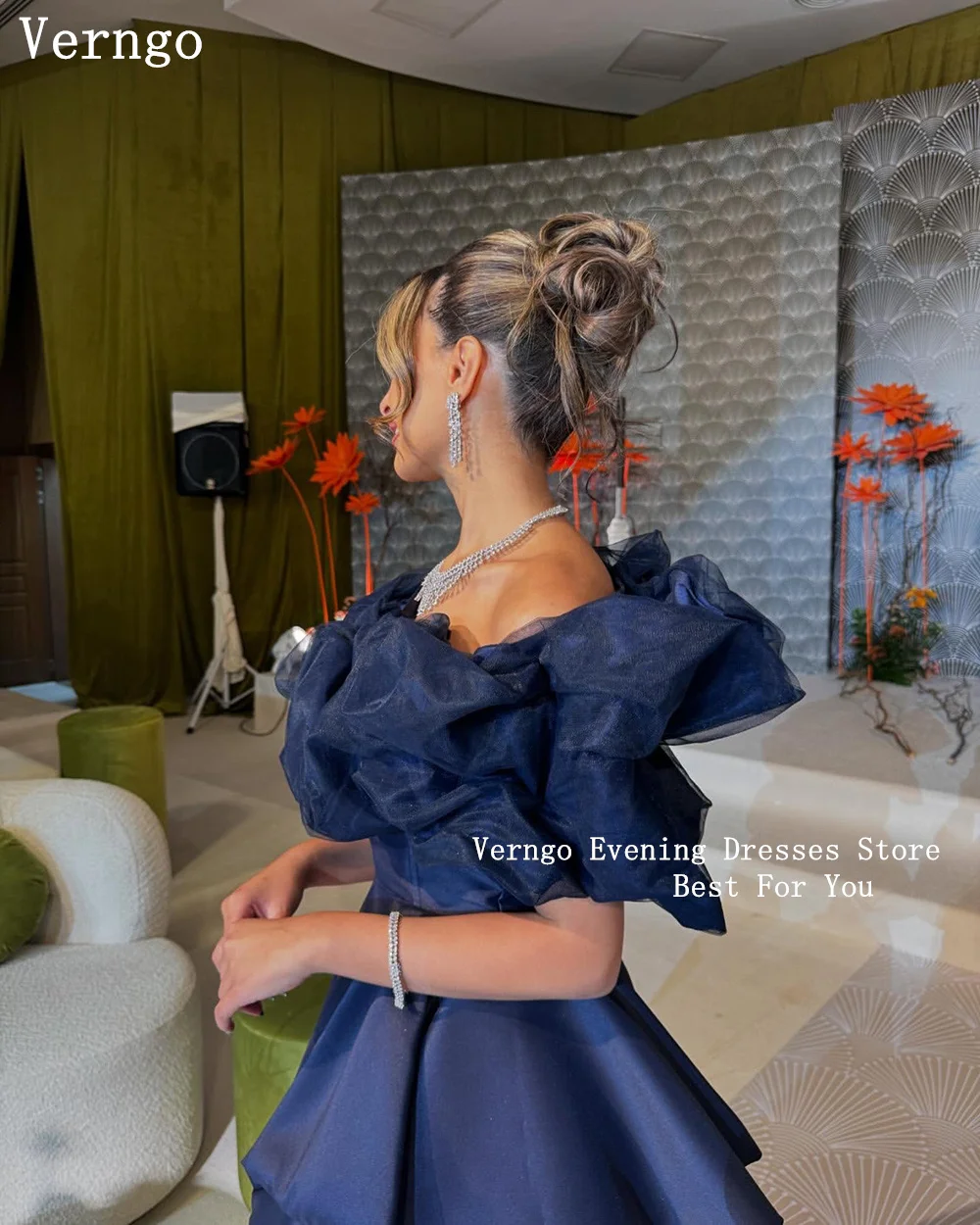 Verngo Navy Blue Satin Evening Dress Off The Shoulder A Line Prom Gown Simple Elegant Arabic Prom Party Dresses Customized