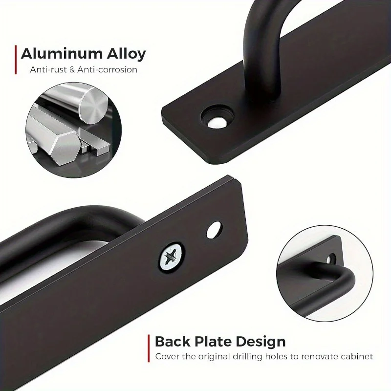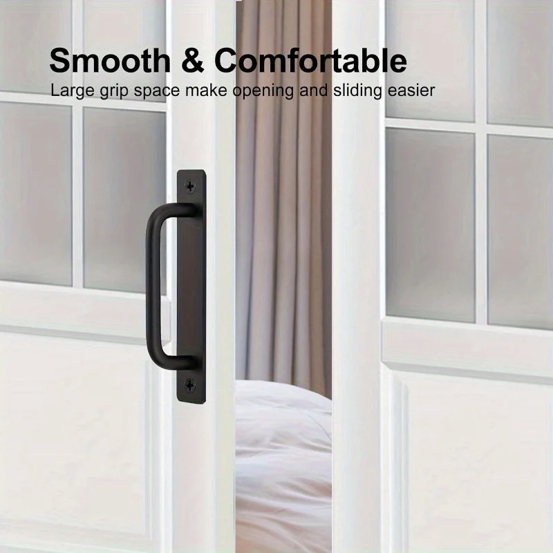 2pcs Barn Door Handles, Sliding Door Handle, Black Cabinet Handles, Door Pull Handle, Aluminum Alloy Door Pulls with Plate