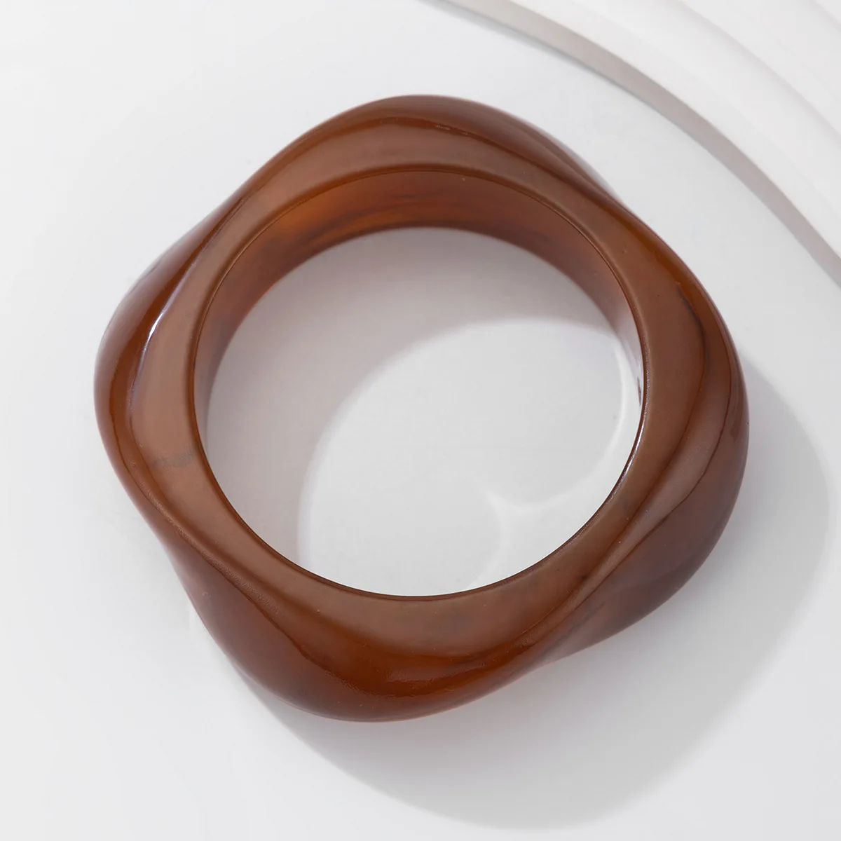 KMVEXO Vintage Punk Brown Coffee Thick Resin Acrylic Bangles Geometric Irregular Wide Cuff Bangle Bracelet For Women Men Jewelry