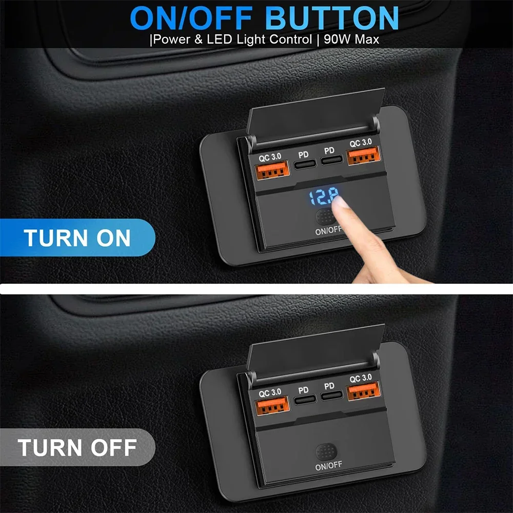 Car Charger Socket Adapter with Switch, 2-4-Ports Charging Splitter, Outlet for Bus, RV, ATV,Truck,Boat,Outlet,12V,24V, PD,QC3.0