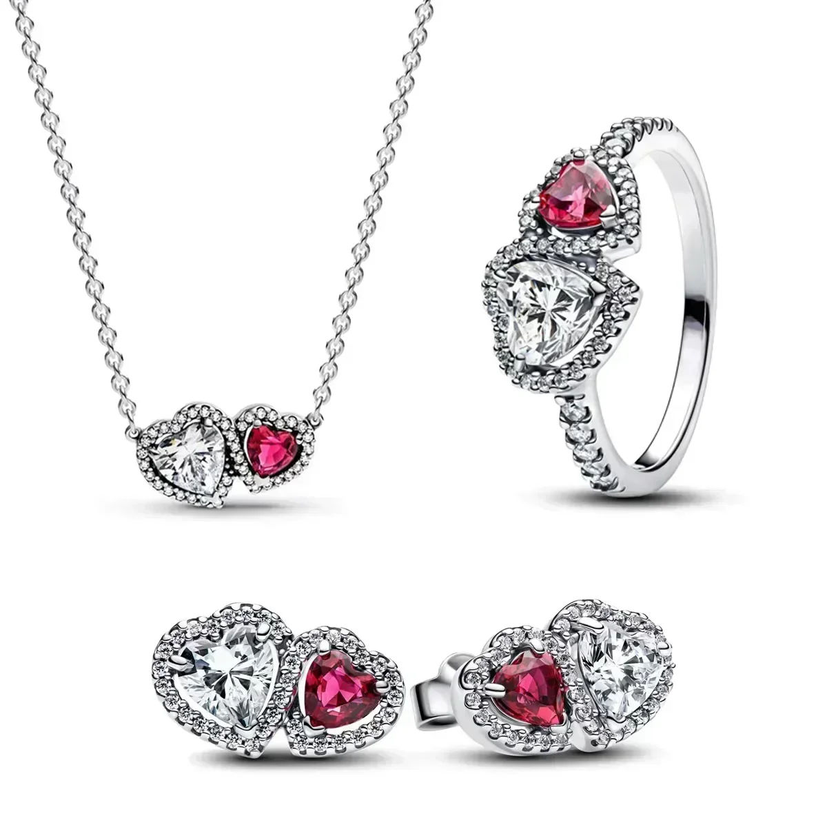 Fine Jewelry Pink Shining Bow Set Ring Earrings Bracelet Necklace Zircon Original 925 Sterling Silver DIY Women DIY Birthdy Gift