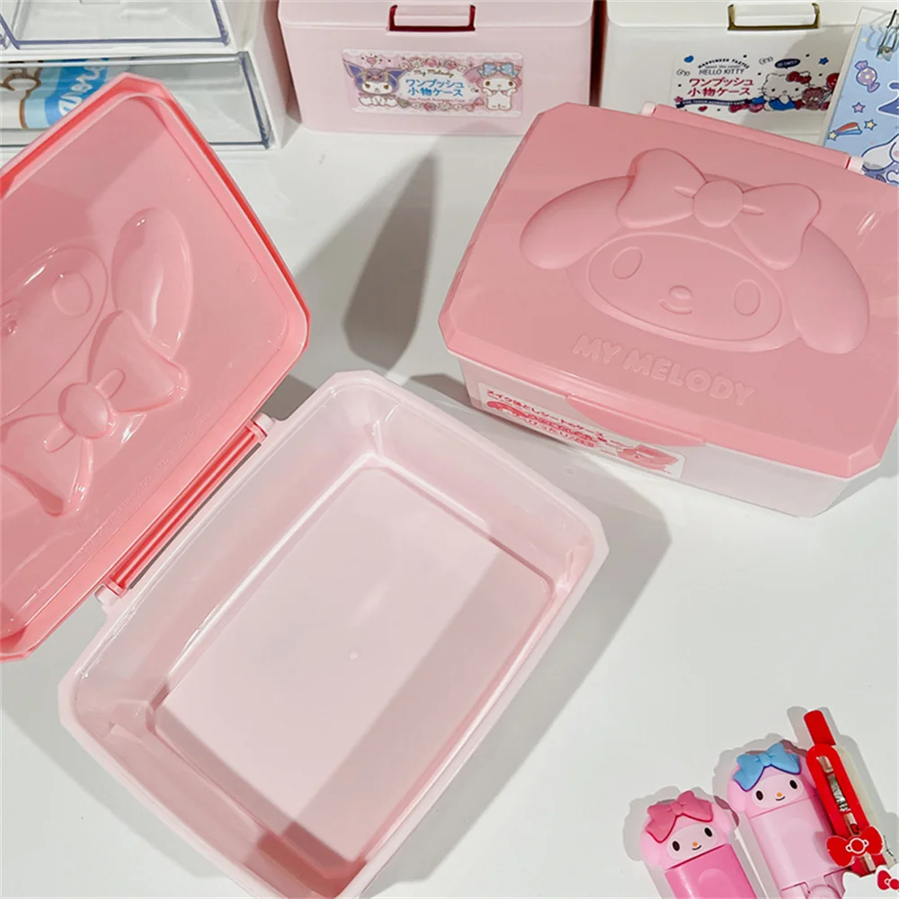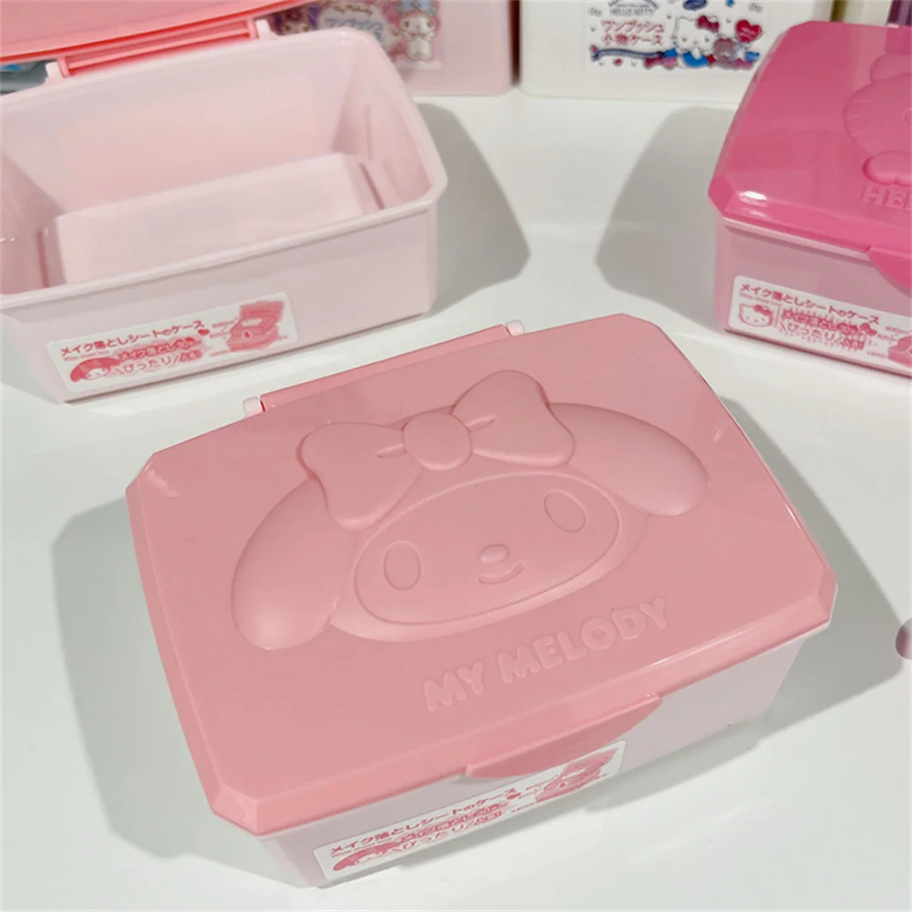 Sanrio Hello Kitty Melody Storage Box Cartoon Kt Cat Flip Cover Cotton Swabs Cotton Pads Stationery Sticker Organisation Gifts
