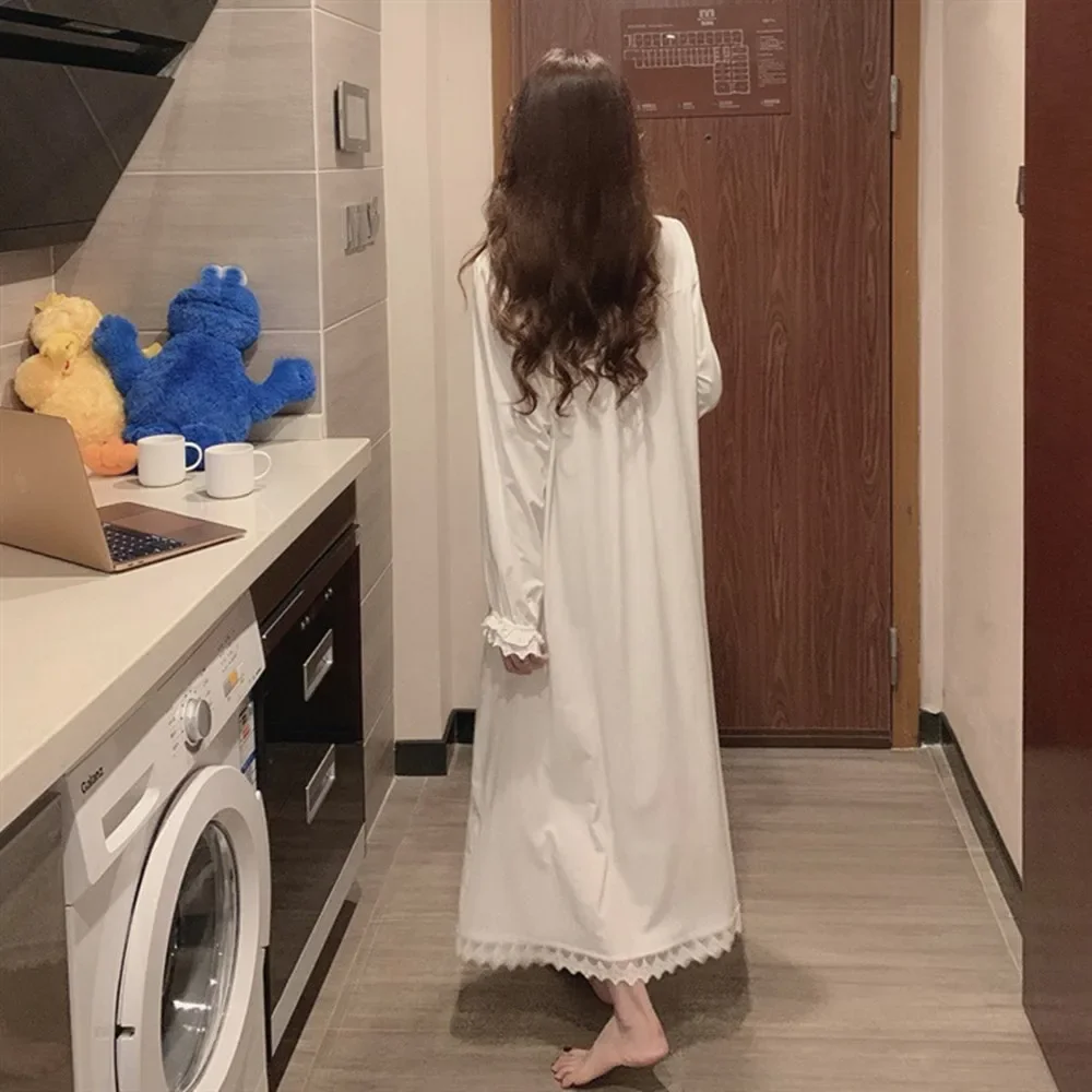 Long Sleeve Princess Style Nightdress Women's Pajamas Lace Palace Korean Version Loose Plus Size 2024 New Homewear Birthday Gift