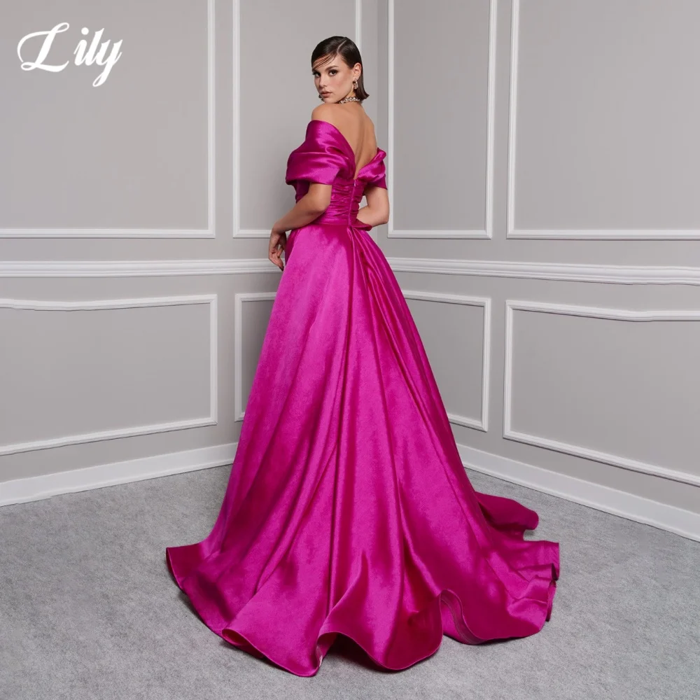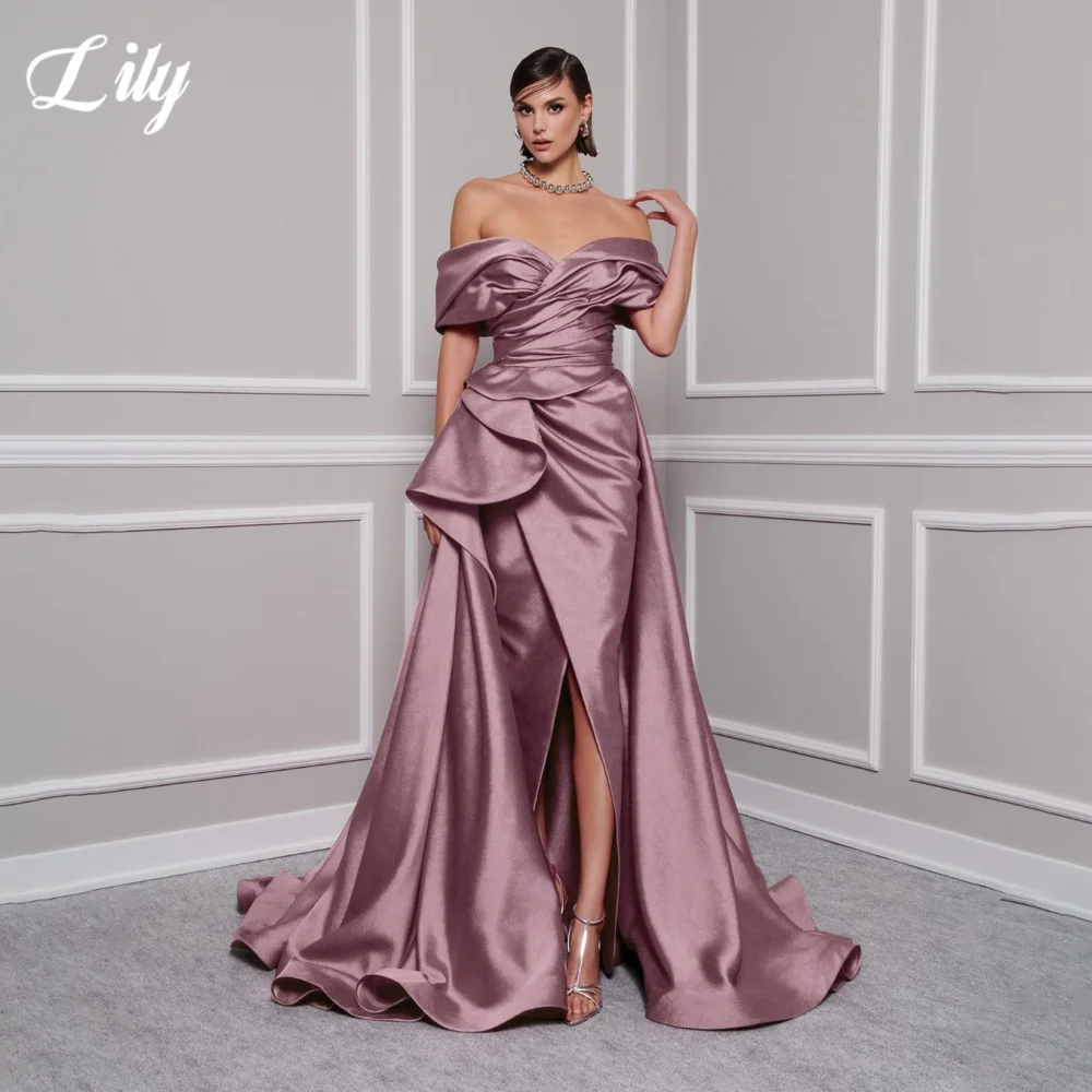 Lily Red Elegant Prom Gown V-Neck Off the Shoulder Party Dress for Woman Satin Pleating Side Split Evening Dresses Customized