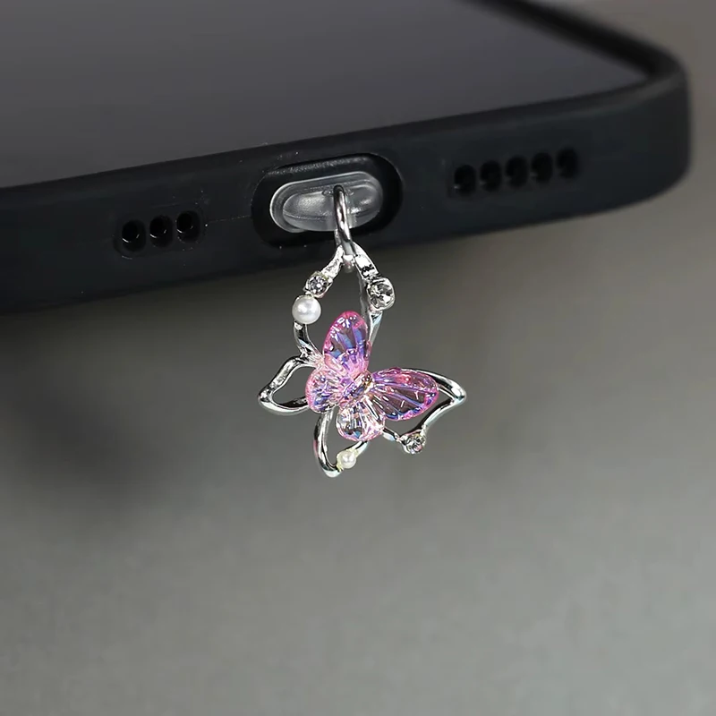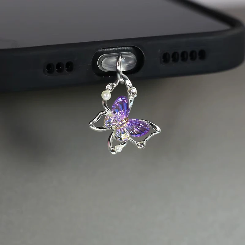 Beautiful Butterfly Phone Dust plug Accessories Decoration Hanging Pendant for iPhone for Samsung Type-C Charging Port