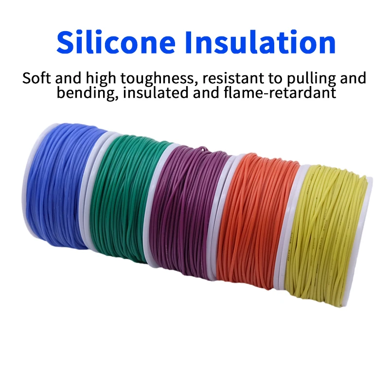5 Colors Silicone Wire Tinned Copper Wire DIY Electric Wire Soft Electrical Wire Flexible Hook up Kit Wire 20/22/24/26/28/30AWG