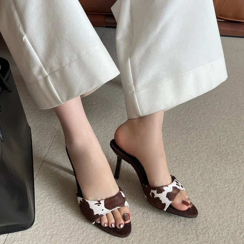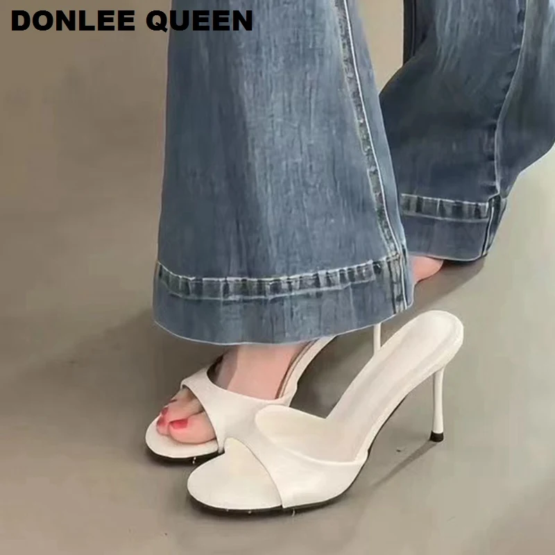 2025 Fashion Thin High Heels Slides Women Open Toe Pumps Slip Sandal Female Slippers Mule Patent Leather Outdoor Flip Flops