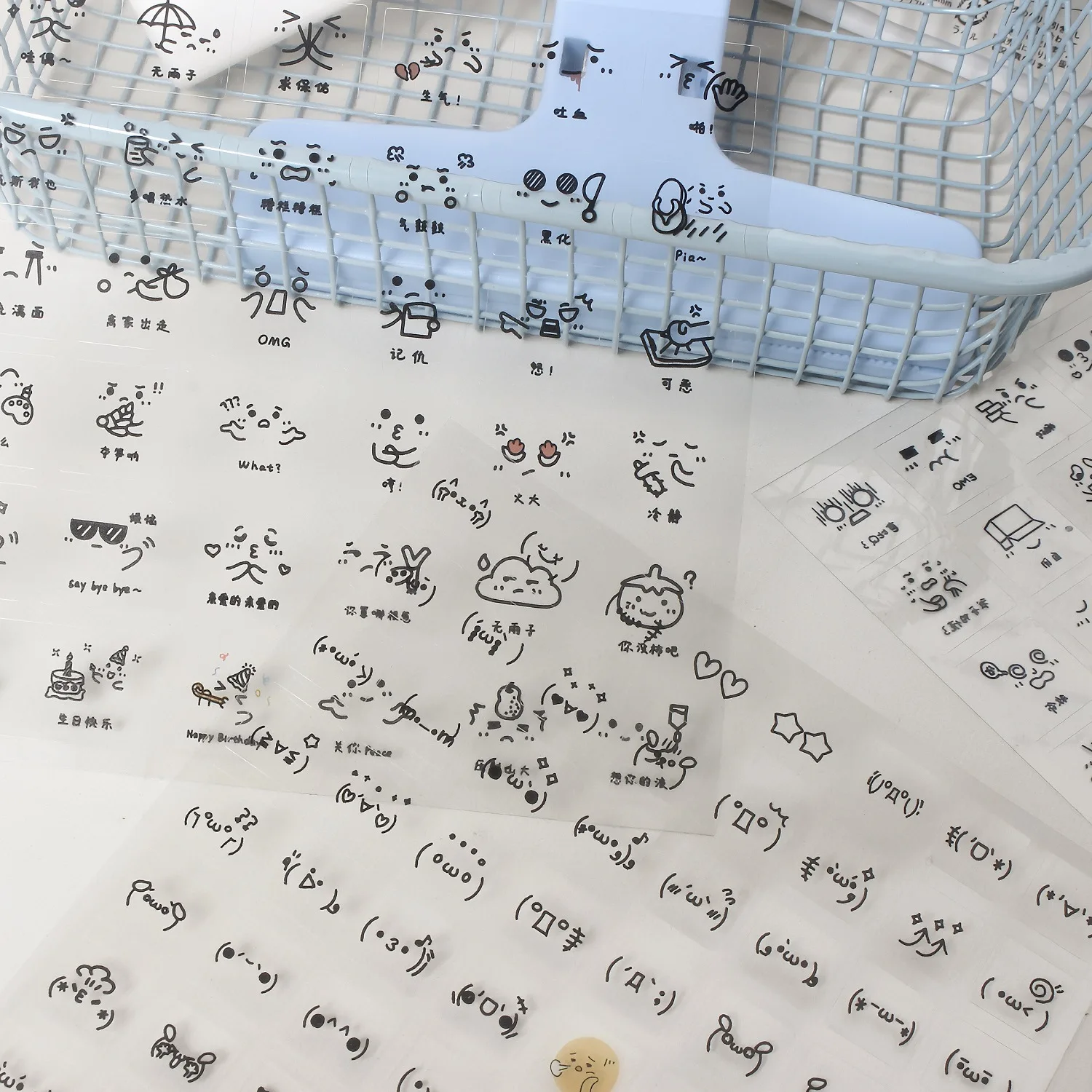 10Pcs Cute PET Emoticon Stickers DIY Journal Scrapbooking Decorative Material Stickers Kawaii Handbook Meme Stickers Kids